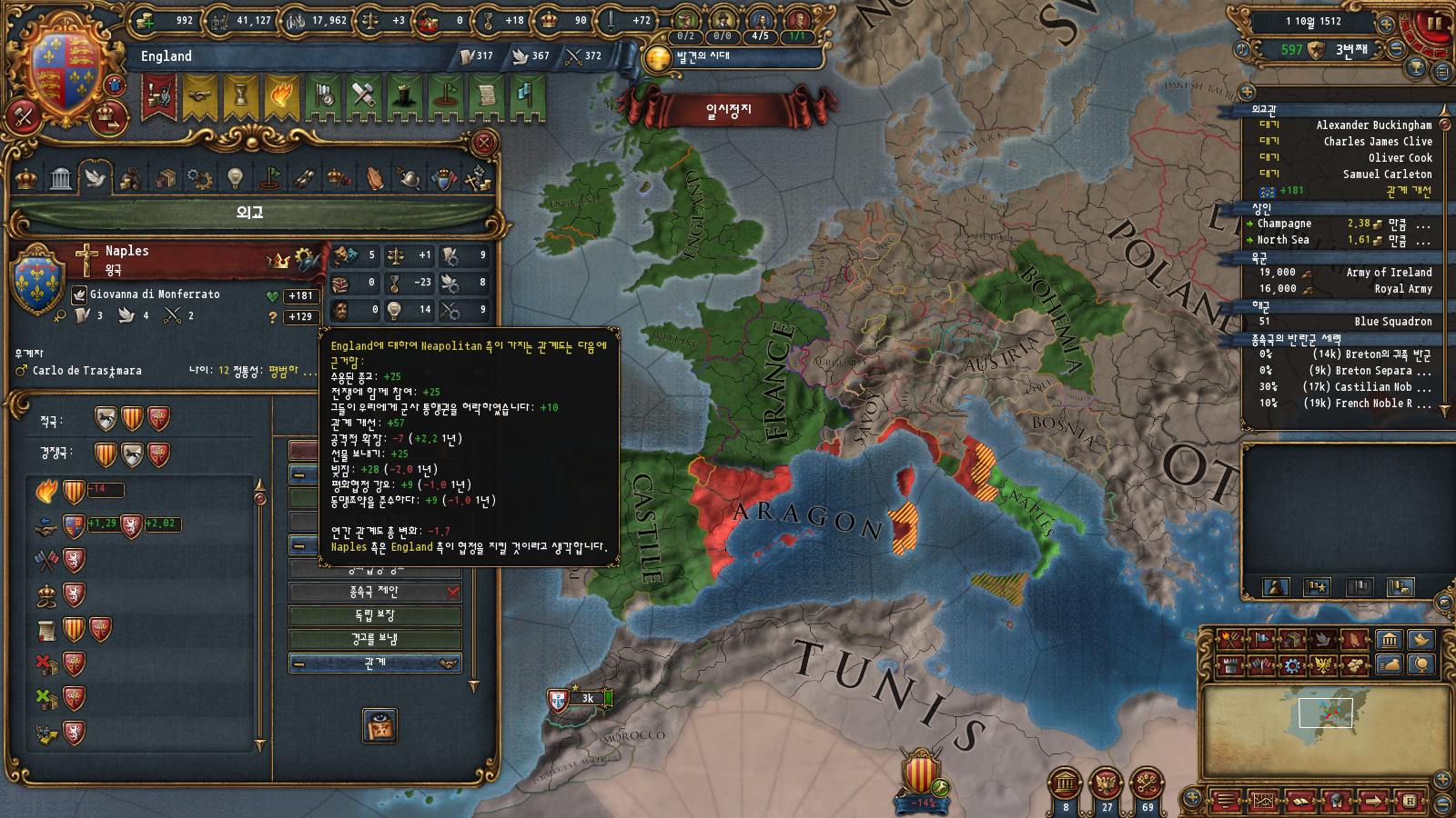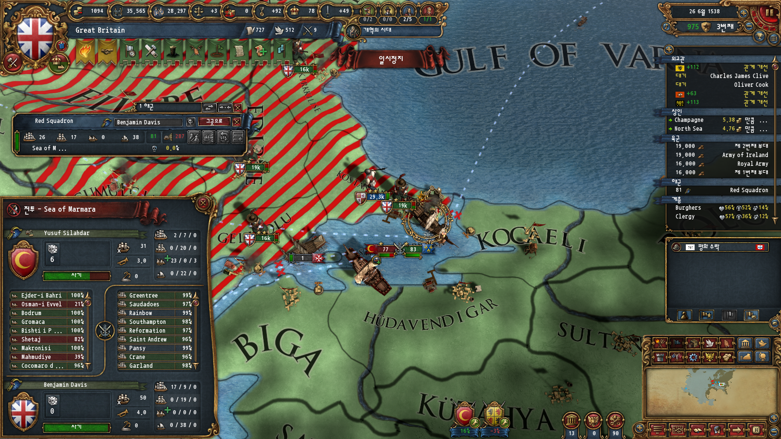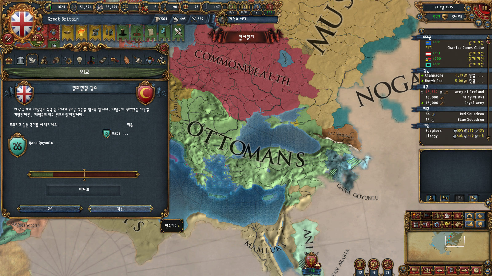 저는 당시 오스만의 확장을 차단하기 위해서 베니스, 맘루크, 카라코운루 전부 관계를 100근처로 맞추고 있었습니다 ㅋㅋ