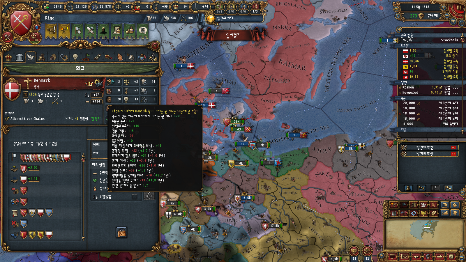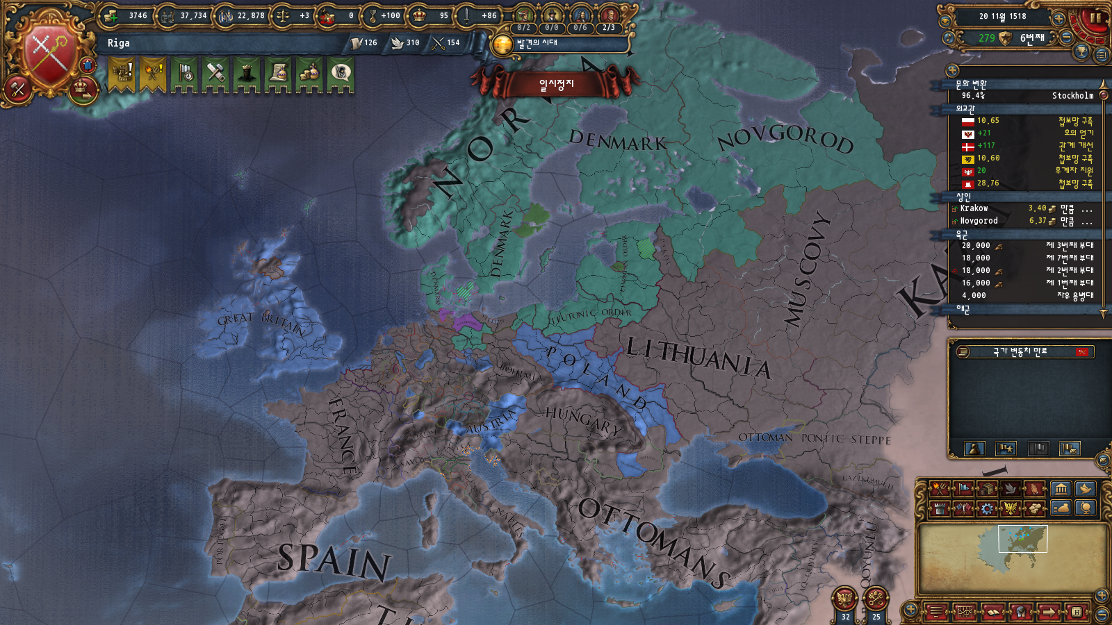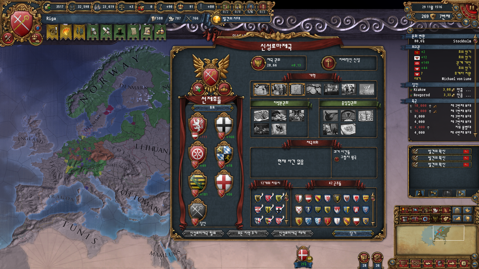 북유럽 통일이 갑자기 되어버렸고 대충 관리하다가 프랑스 오스만정도 밀어내고 보헤미아 해방하면서 오스트리아 보헤미아 좀 쪼개고 신롬개혁 천천히 해봐야겠습니다