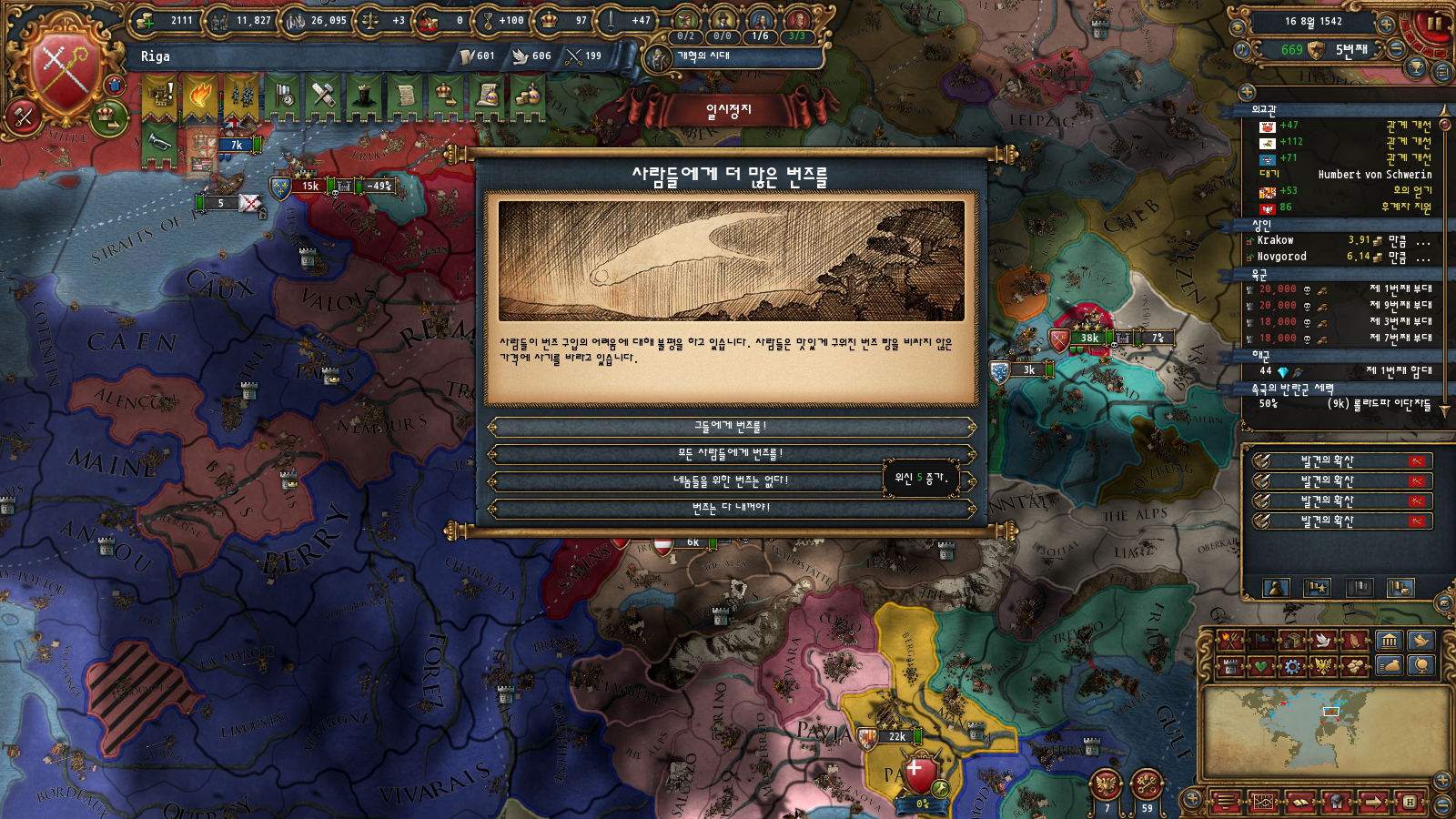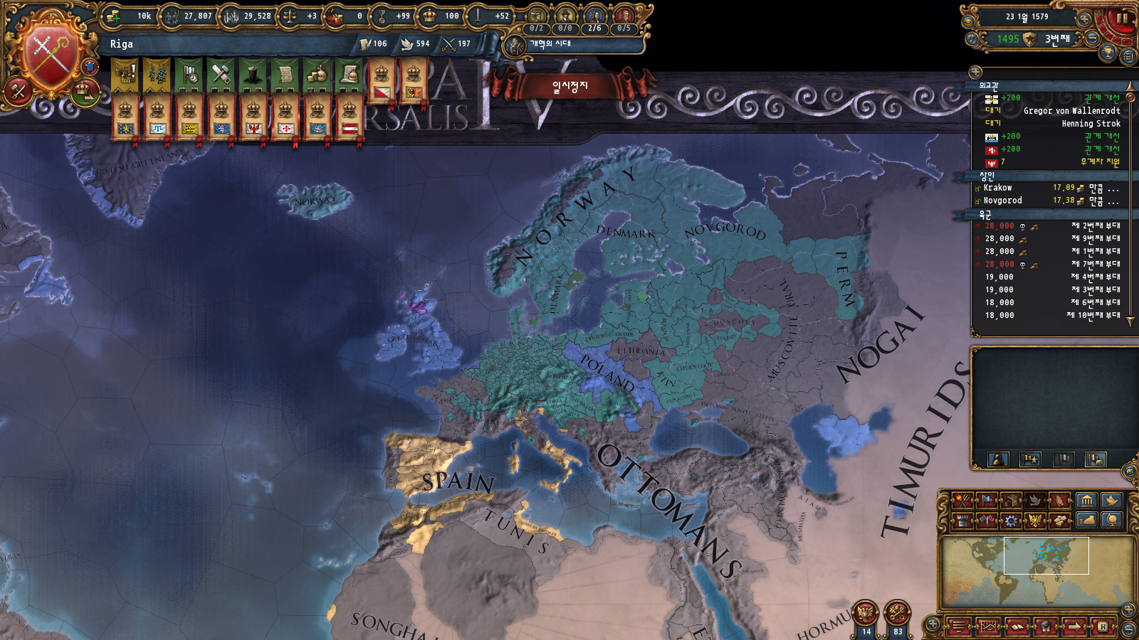 그래도 정리됐으니 이후에 대충 덩치 큰 국가들은 신롬편입 꼼수 쓰고 오스만이랑 모스크바만 쪼개 먹으면 되겠네요