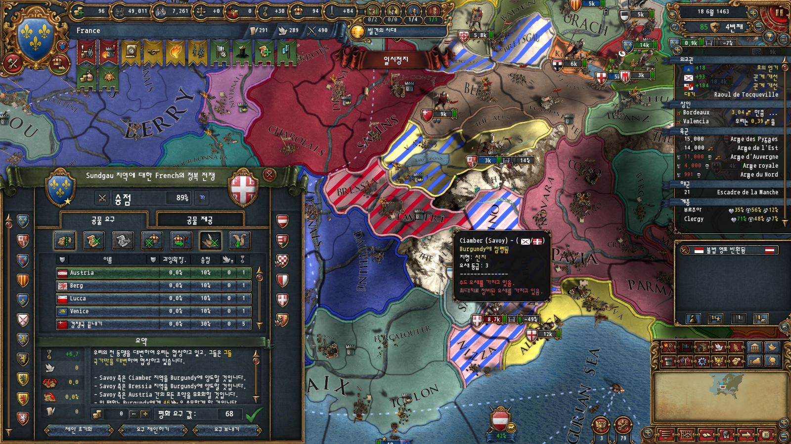 그래서 일단 부르고뉴와 동맹부터 맺었다 보시면 되겠습니다