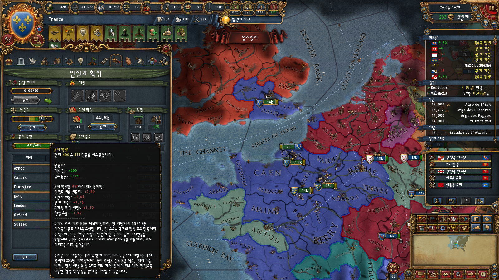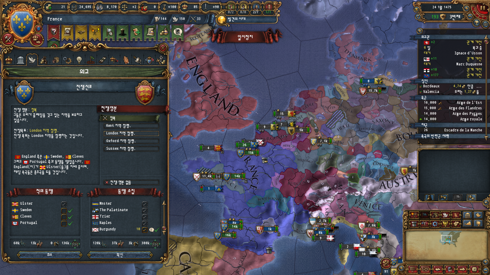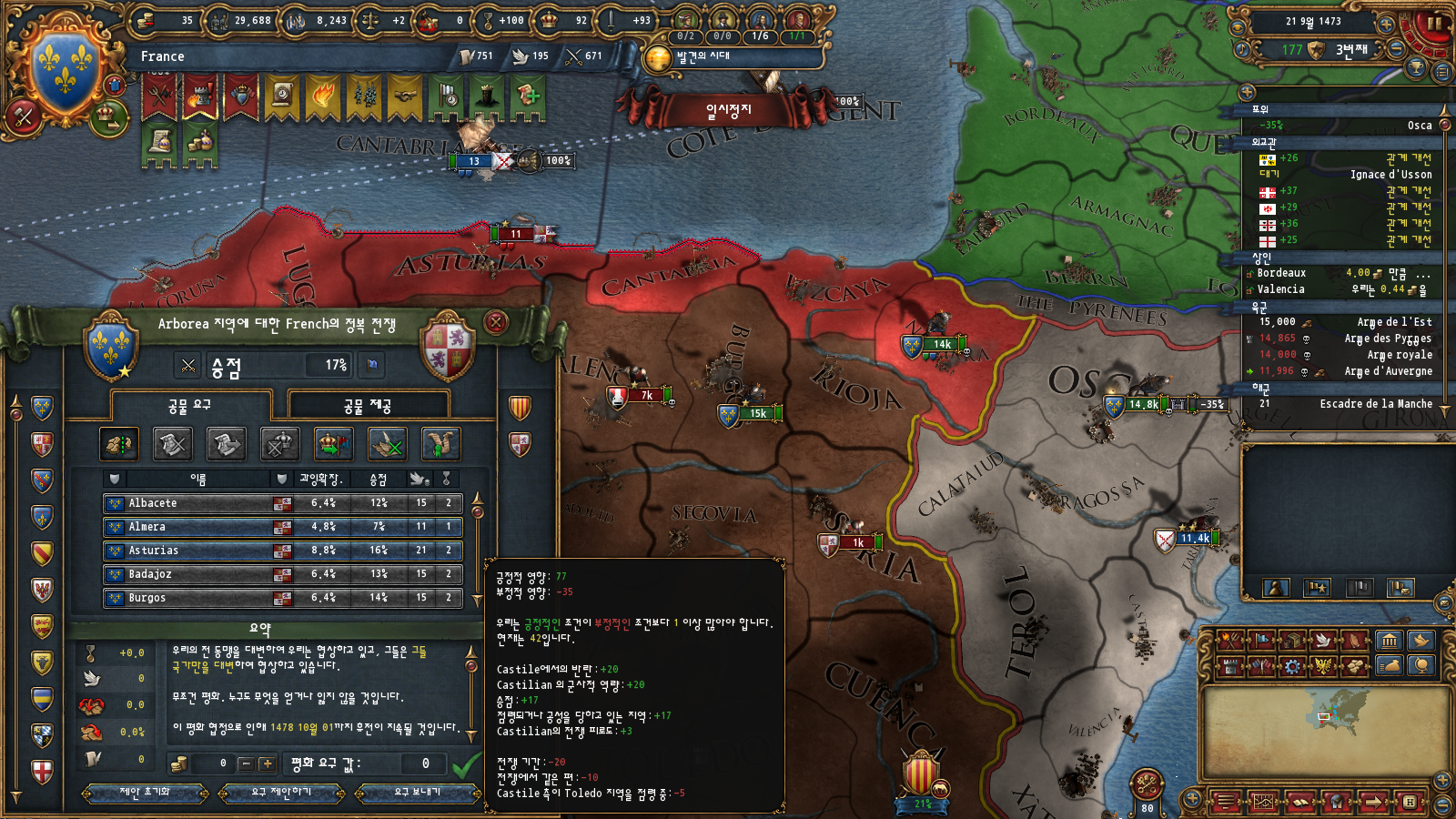 AE관리도 있긴 한데 부르고뉴 자동합병 이벤트가 평화 중에만 뜨기 때문에 그렇습니다