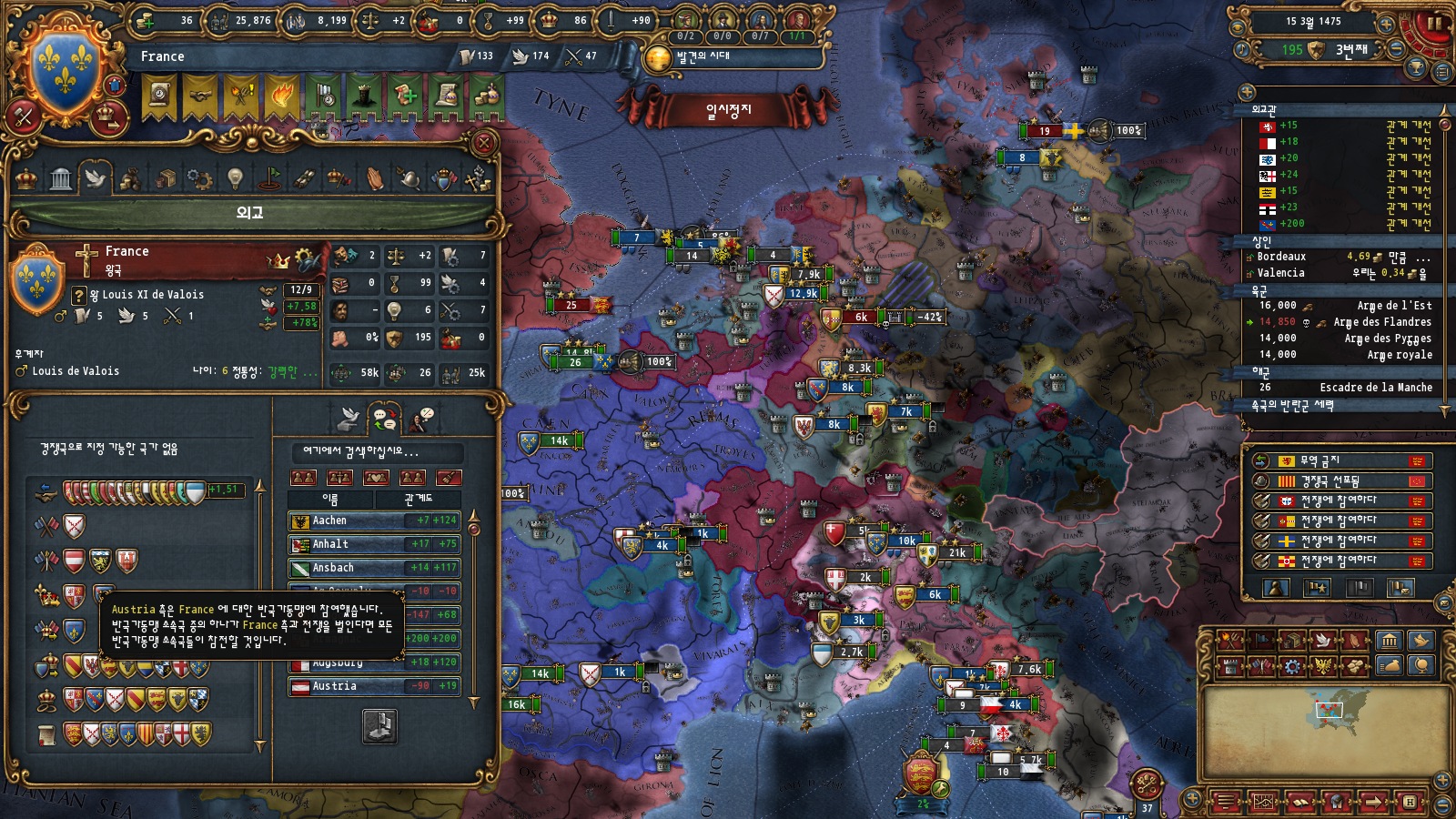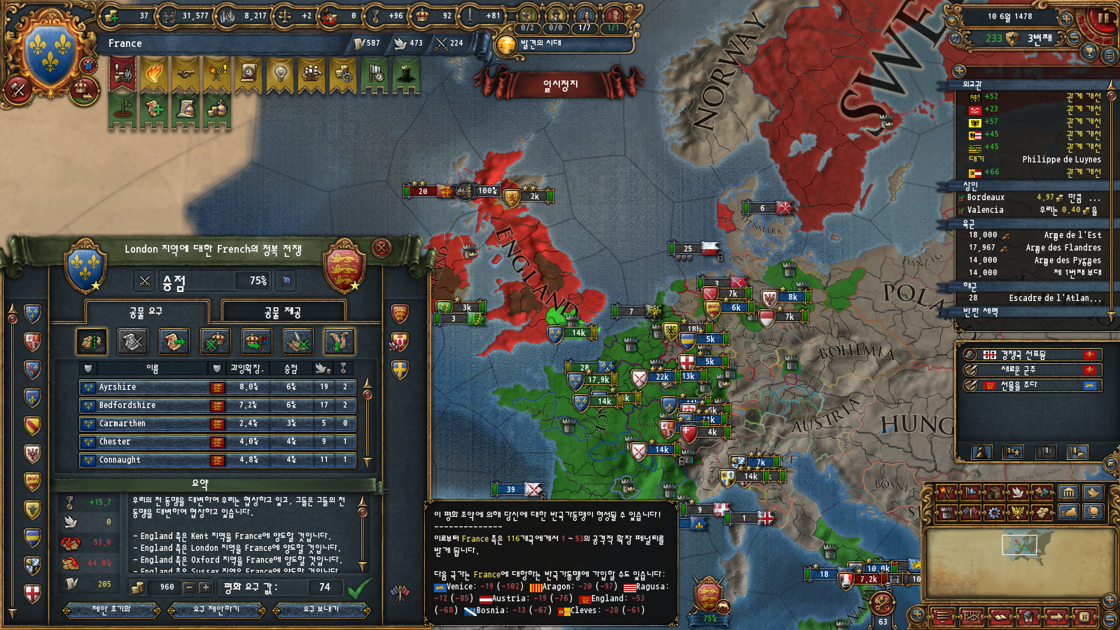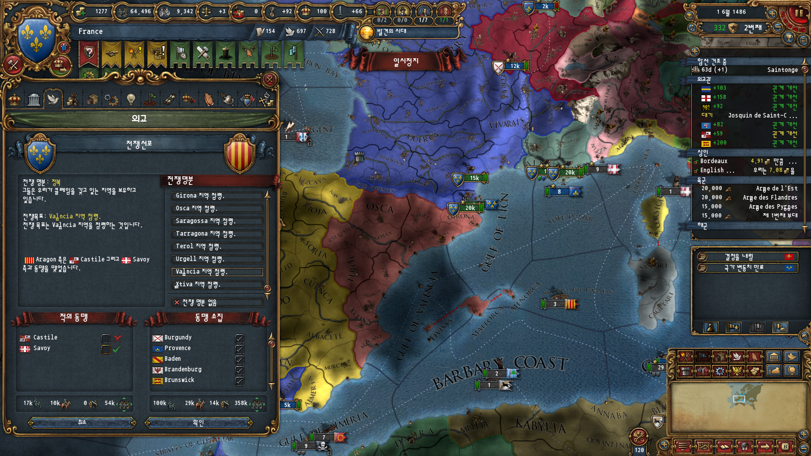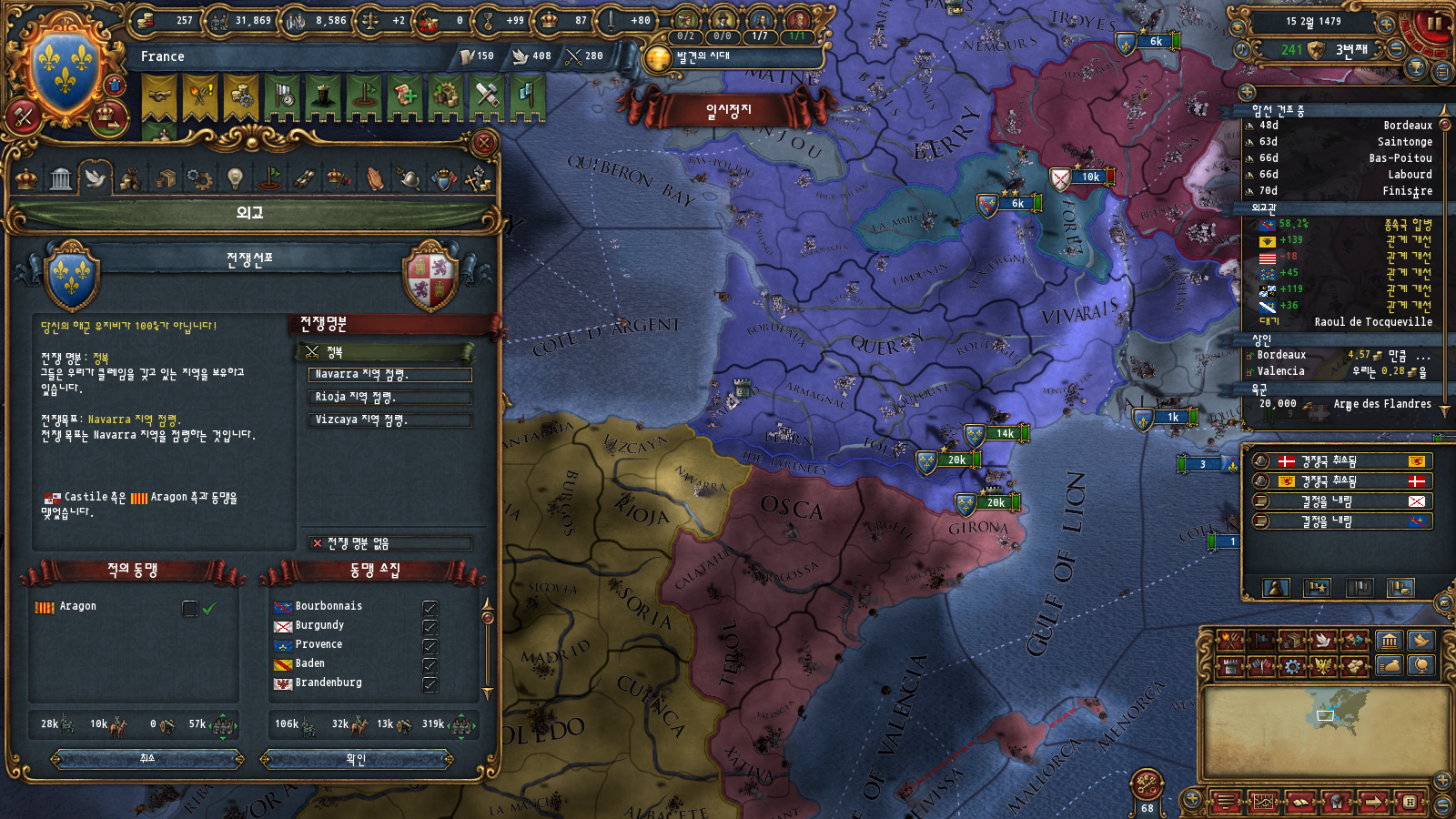 AE관리도 있긴 한데 부르고뉴 자동합병 이벤트가 평화 중에만 뜨기 때문에 그렇습니다