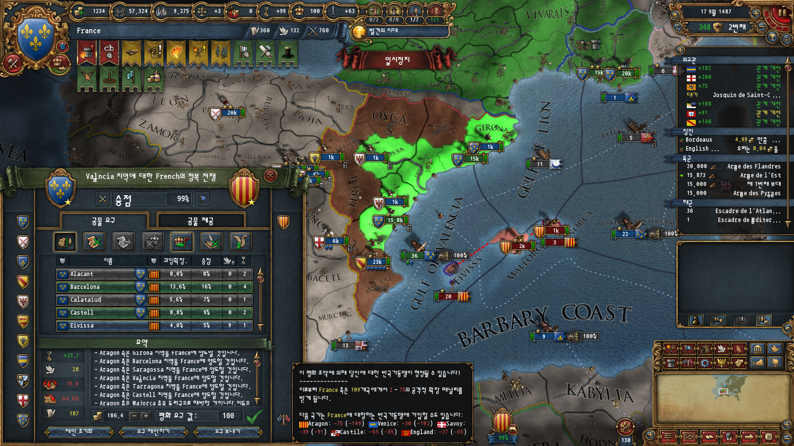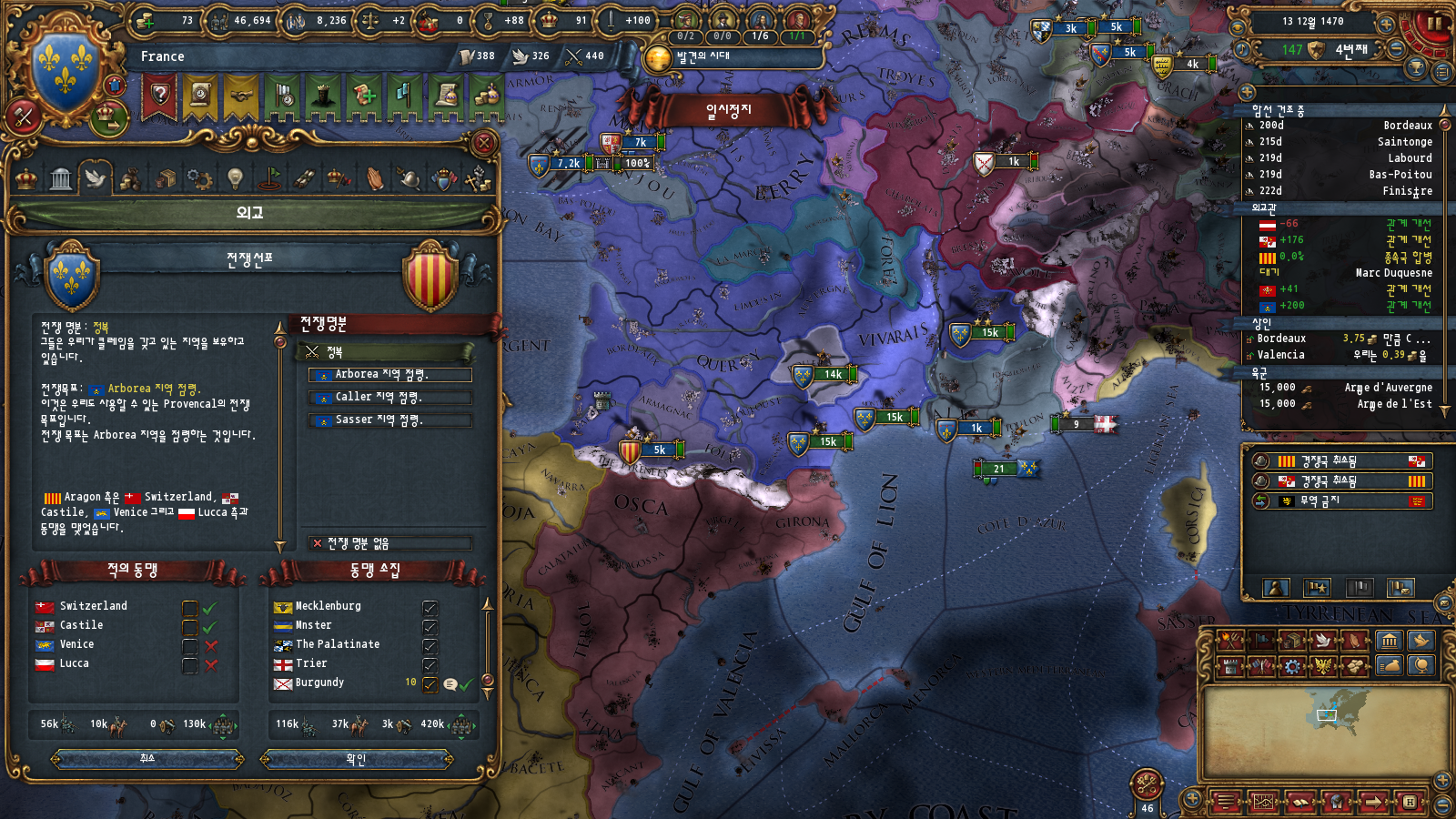 그런데 외교 상황상 아라곤 동맹이 많이 바쁜가봅니다