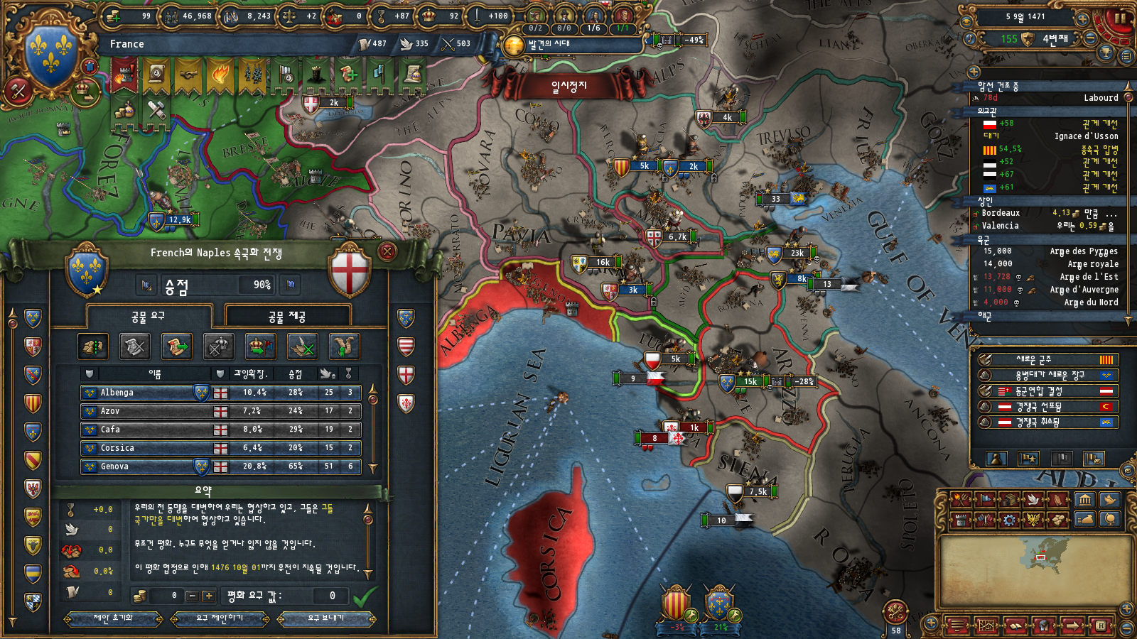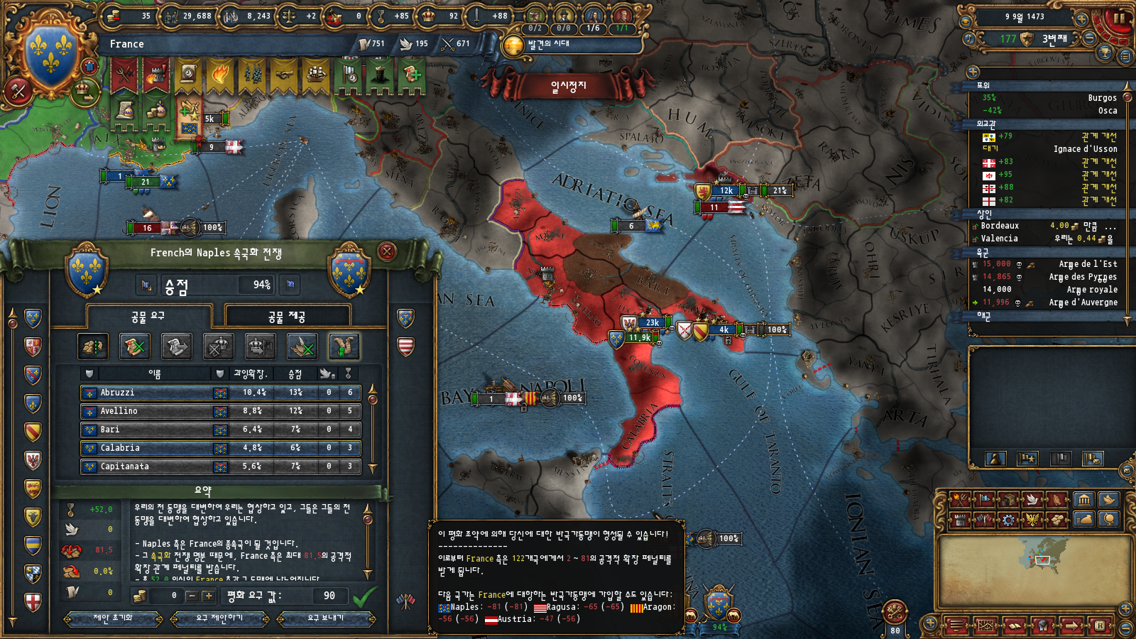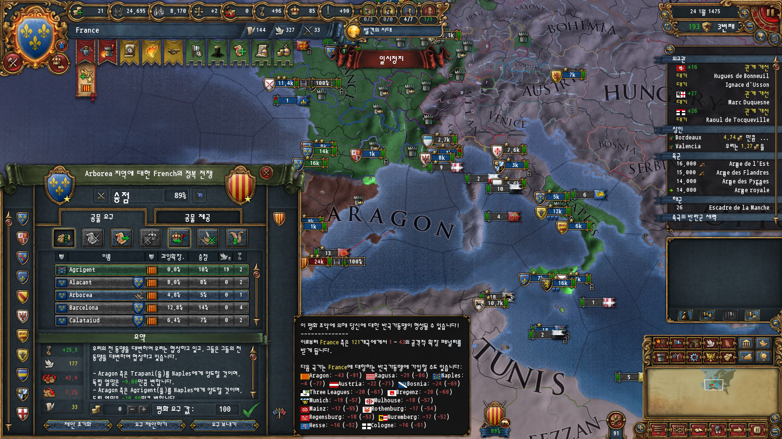 이러고 나서 나폴리에 군대를 올인하여 먼저 종전한 뒤 아라곤을 마무리하여 나폴리에게 리턴코어로 땅을 먹여줄 생각입니다