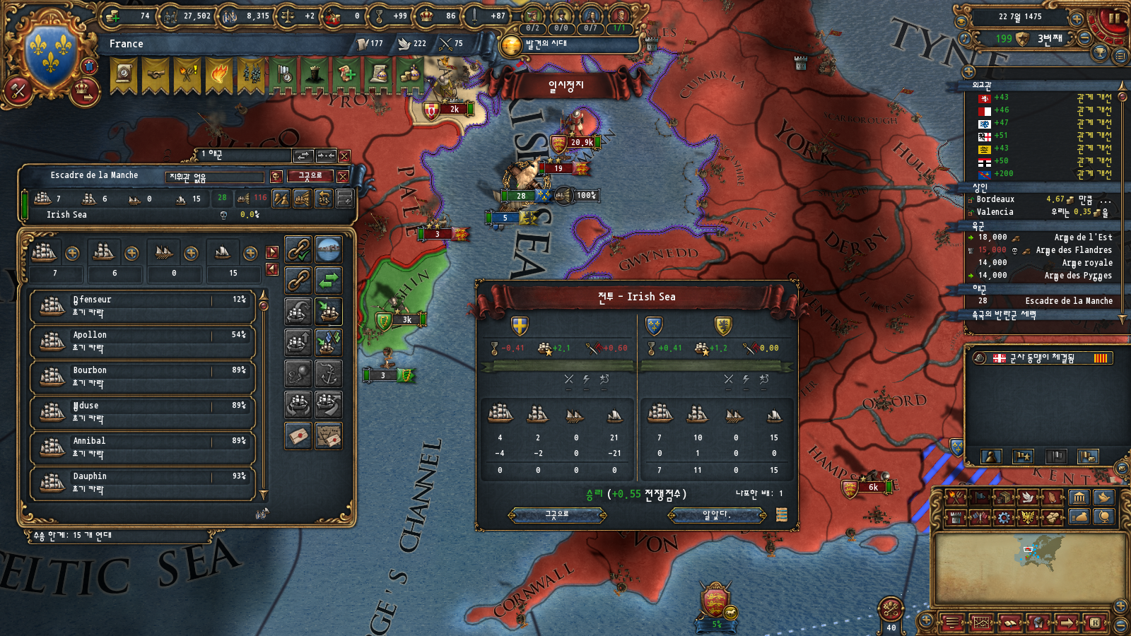 잉글랜드 진입 준비도 해야하기에 수송선도 한 부대정도는 수송 가능하게 늘려줬습니다