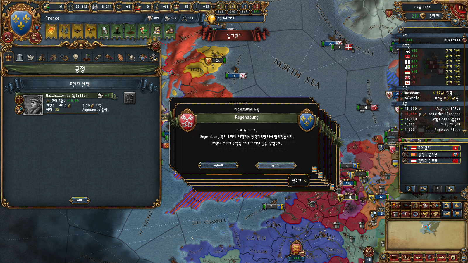 이제 1516년 내에 평화 기간이면 자연합병 이벤트가 180 mtth로 뜨니 기대해보면 좋을 것 같습니다
