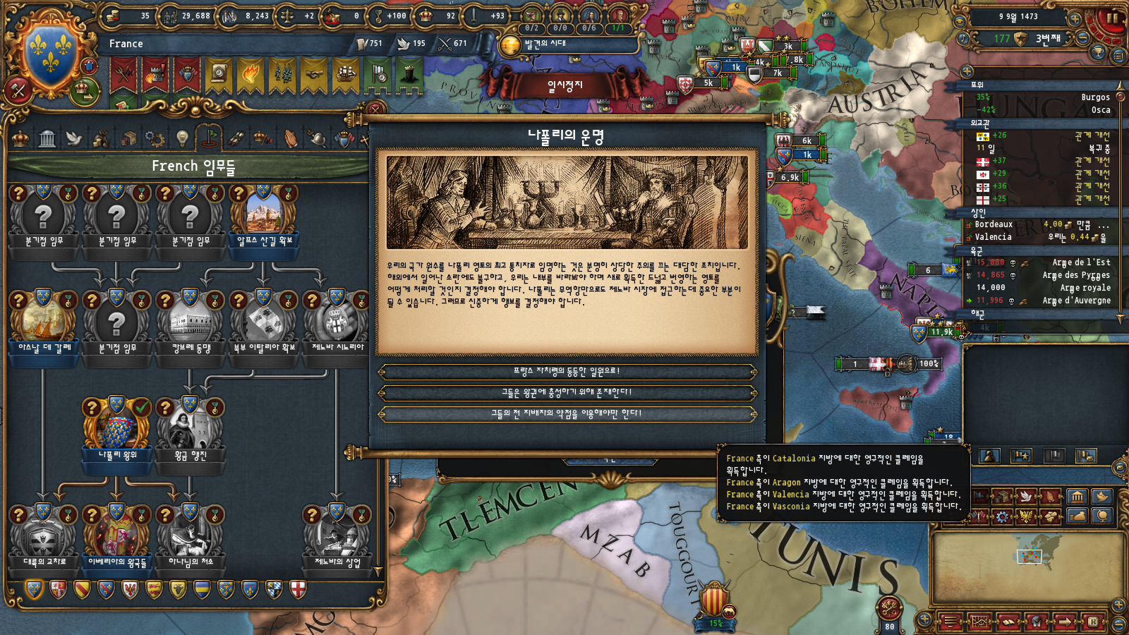 그리고 아라곤을 3차 전쟁에 걸쳐 속국화하여 해당 미션을 클리어하면 되겠습니다