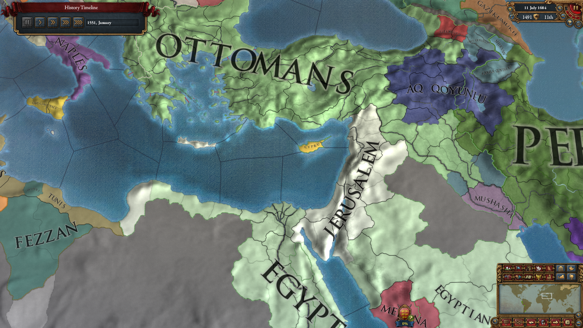 다만 맘루크를 패다보니, 이윽고 따라온 오스만이 맘루크를 멸망시켜버려 오스만 속국령 이집트가 형성되어버렸다는 문제가 발생. 예루살렘 지역 확보가 좀 귀찮아졌습니다.