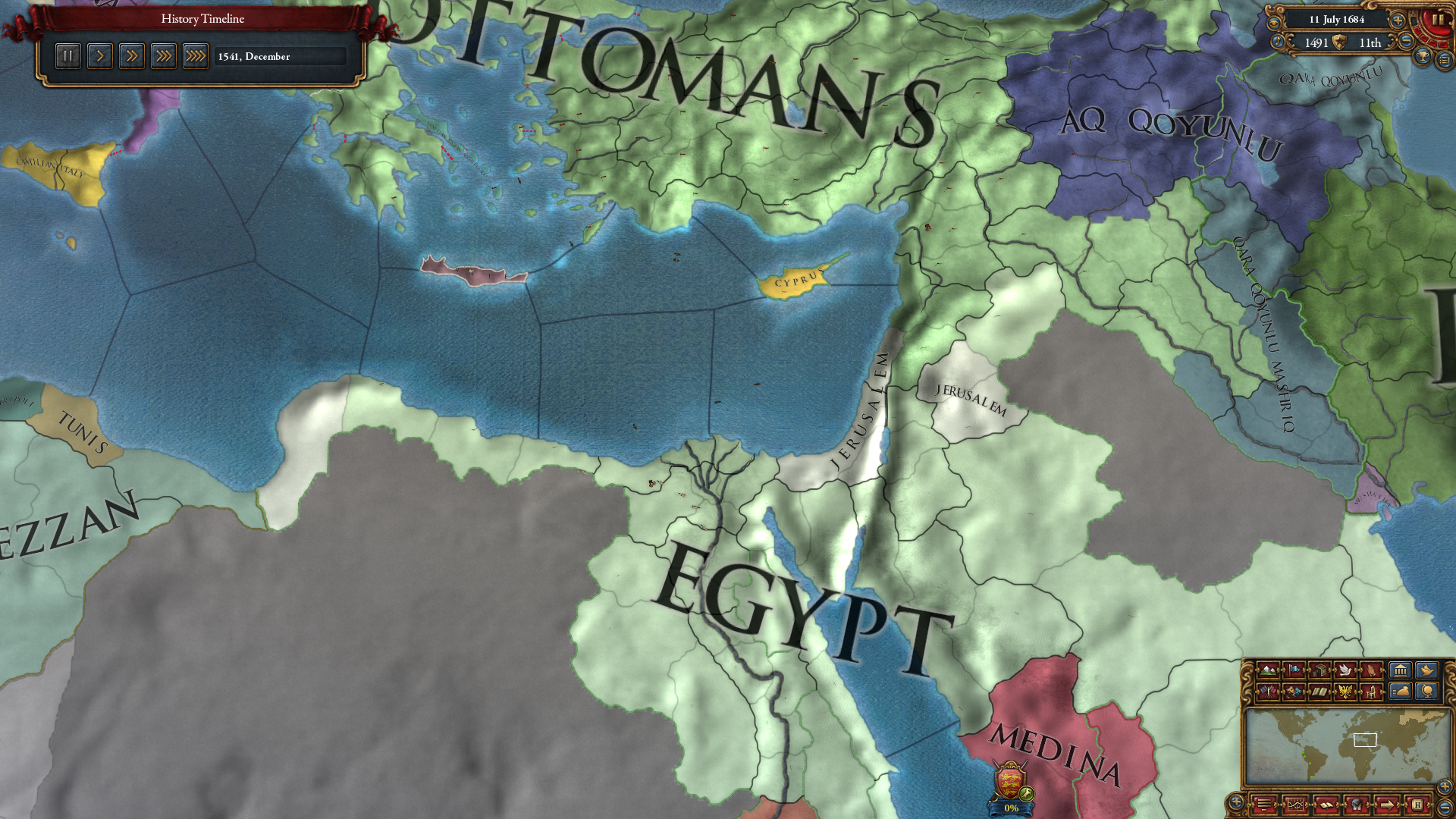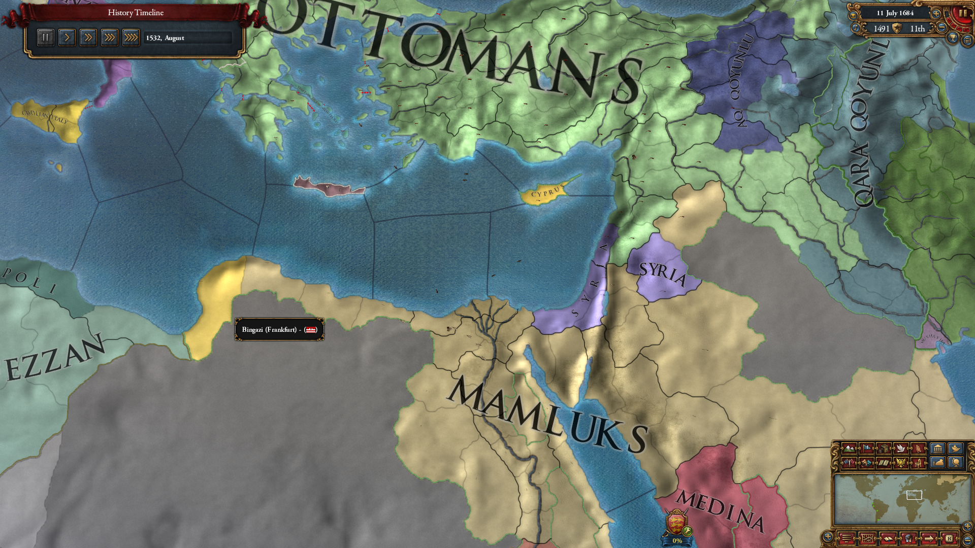 이후 상대적으로 약한 국가인 맘루크를 패서 벵가지는 직접 먹고, 시리아(속국)에게 예루살렘 형성에 필요한 땅을 먹여줬습니다.