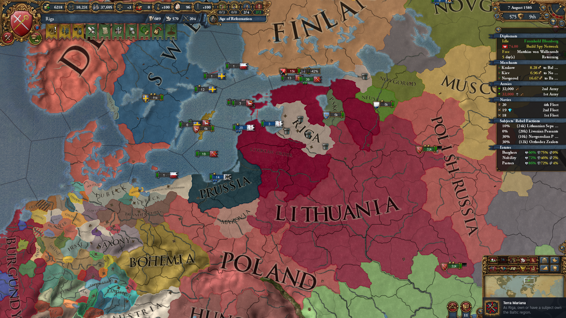 Terra Mariana는 발트해 권역에 포함된 지역을 자신 혹은 속국이 먹으면 달성되는 업적입니다.