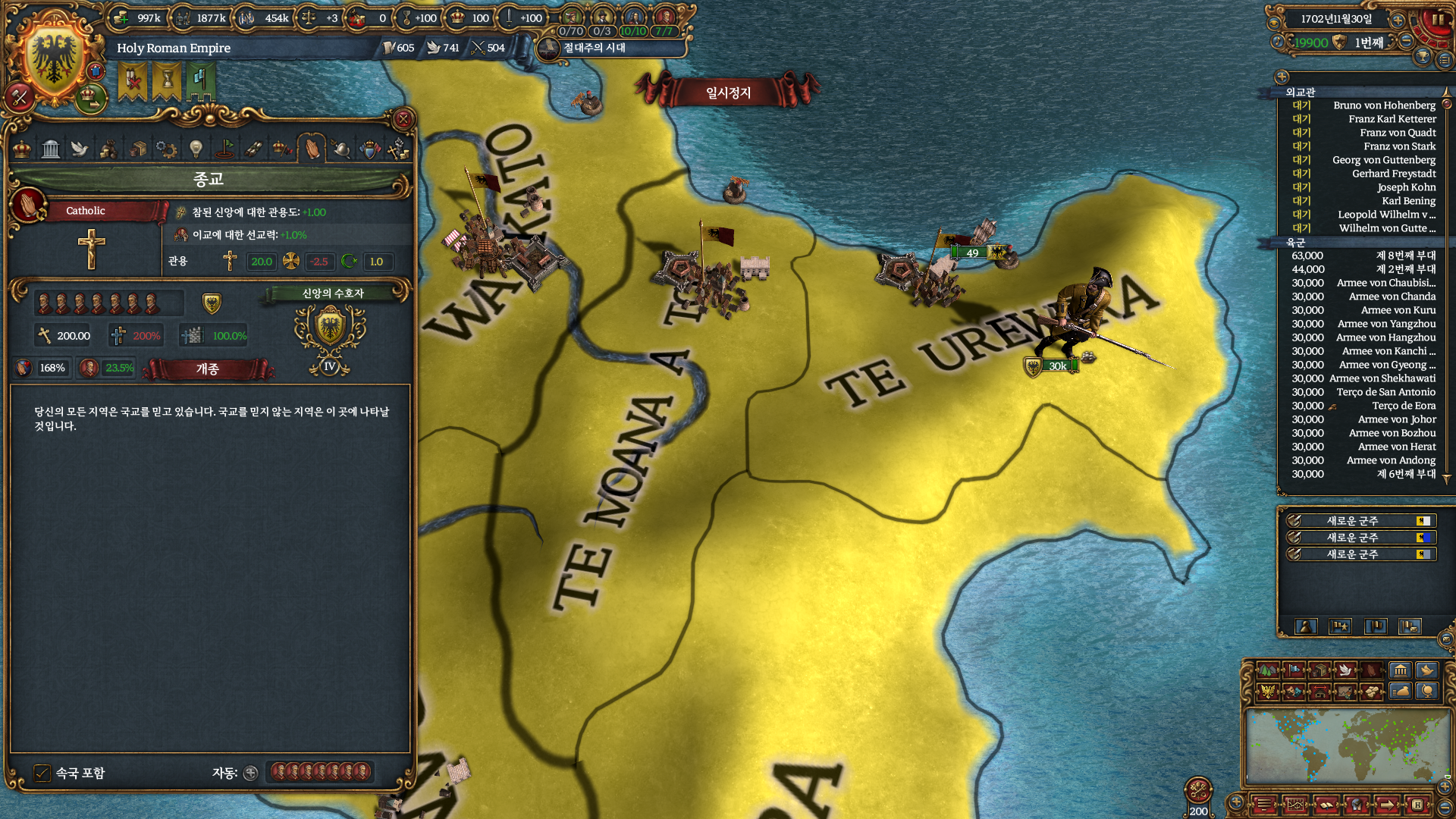 고급포도주 이번판은 절대주의 명분 나오기 전에 끝내서 폴리네시아 쪽은 뉴질랜드 원주민이랑 동맹이길래 동맹 호출로,하와이는 어쩔수 없이 노씨비를..