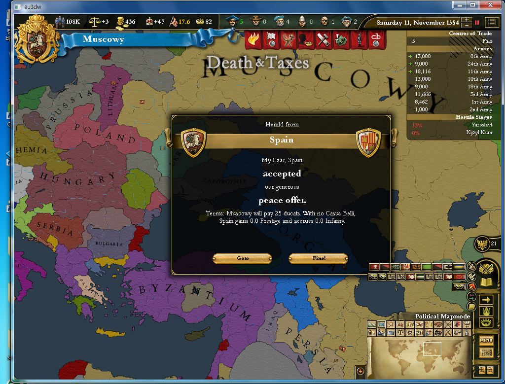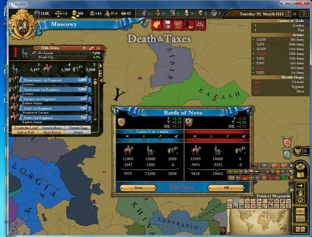 스페인과의 10년전쟁으로 꽤 죽었고 25듀캇도 잃었네요.