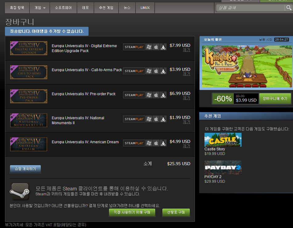 배보다 배꼽이 큰 것 같아서... 스팀말고 다른 저렴한 곳이 있다면 구입해보고 싶은데..