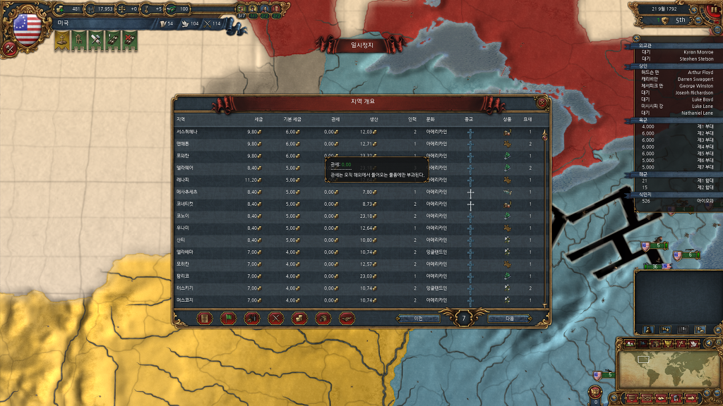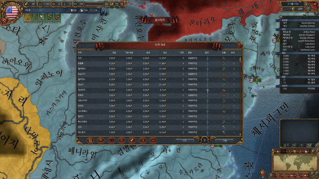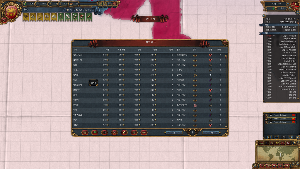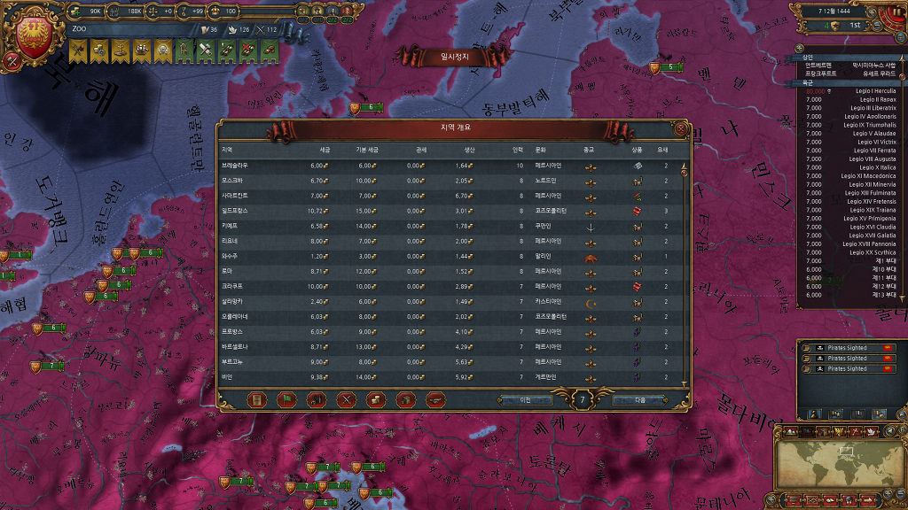 유럽의 기본인력이 10, 8, 7 보헤미아가 가지고 있는 지역이 10, 일드 프랑스가 8(여러분 왜 프랑스가 때려도 때려도 다시 일어나는지 이제 아시겠죠!!! 세금 가장 많이 벌고, 대학교까지 있고, 인력도 2위인 도시가 일드프랑스입니다. 여러분!!!)
