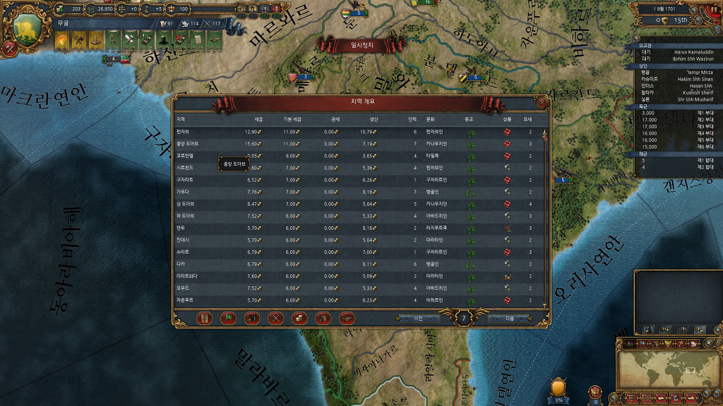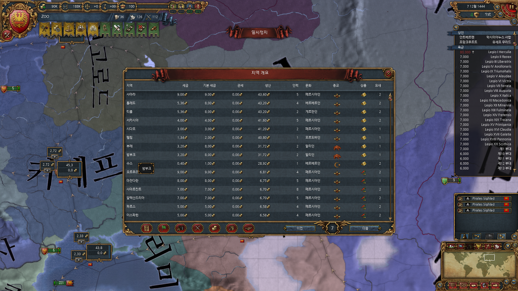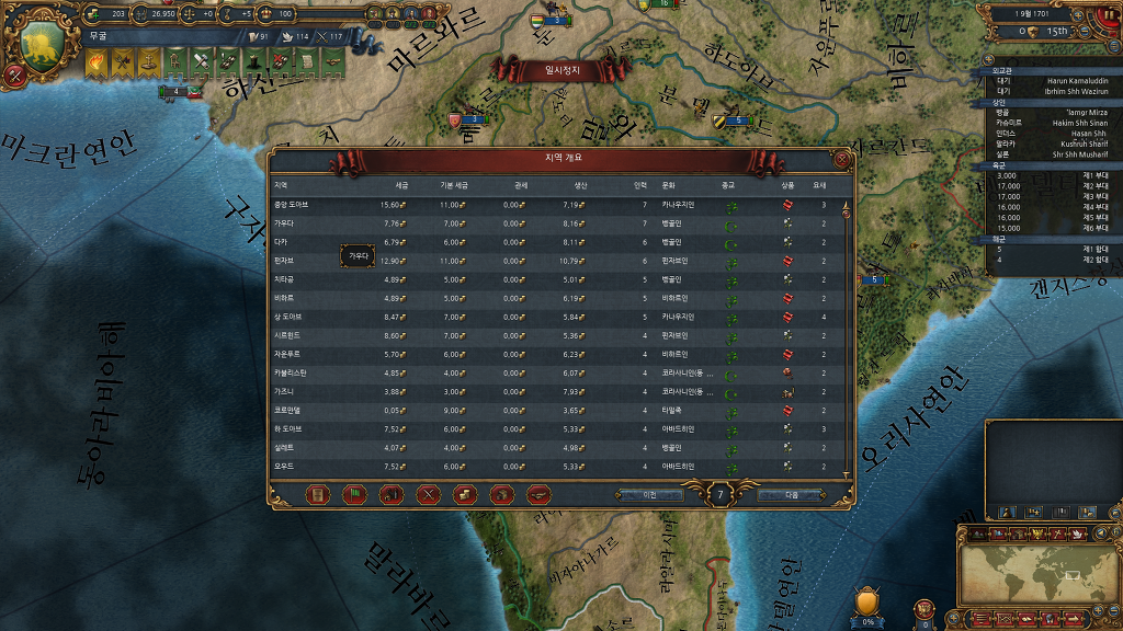 그래서 유럽이 아닌 지역에 어디 좋은 나라 없나하고 크킹2에서 전영토 통일한 데이터를 이어가기 한 후에 지역을 펼쳐보았습니다.