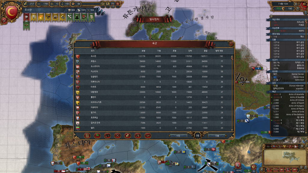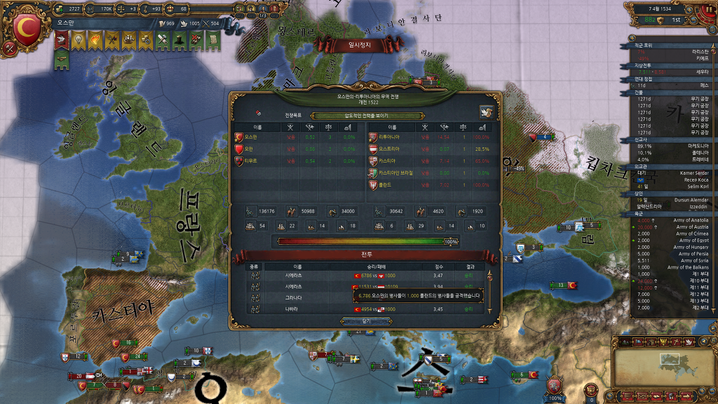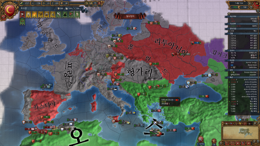 전쟁후 병력 상태입니다.. 오스트리아와 카스티야를 쓸어버렸어야 되는데..ㄷㄷ
