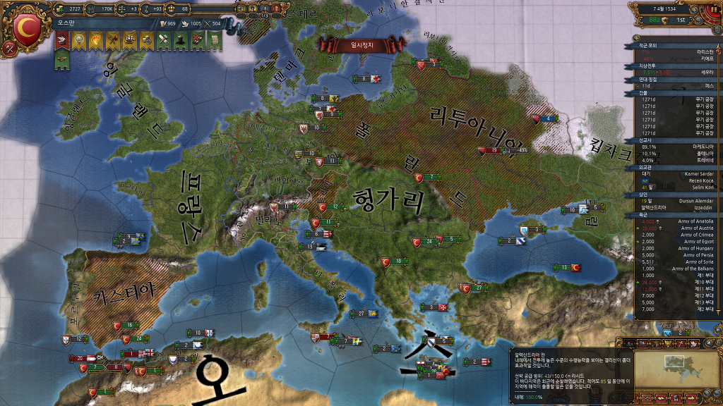 카스티야는 아라곤 합병하더니 섬으로 숨고 오구리는 왜 저기 까지 땅이 있는지 모르겠네요..
