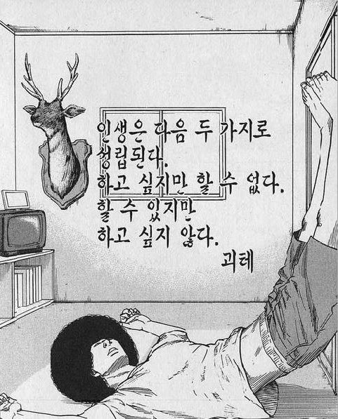 PS - 이 만화를 읽으면 '장기하와 얼굴들'의 '싸구려 커피'가 듣고 싶어지더군요. 그 충만한 루저 근성에서 공통점이 있기 때문인지.