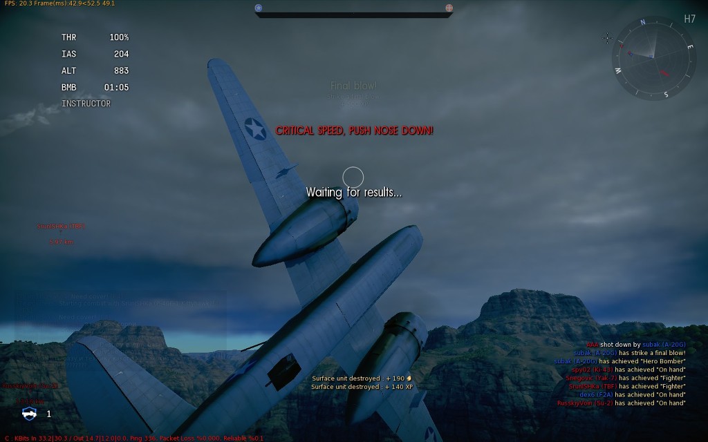 하보크는 죽지 않는다!!! 진짜 적군 폭격기랑 누가누가 잘하나 내기했네요. 적 베이스에다가 폭탄 세례 붓고 그 후부턴 모조리 기총소사. 1점 차이로 겨우 이겼습니다.
