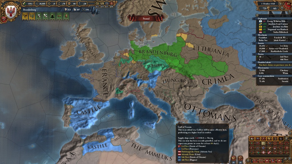 프랑스도 오지도 않고 덴마크도 조용하고 오스만은 맘룩을 못먹어서인지 헝가리 터는것도 힘겨워하고 흐 ..