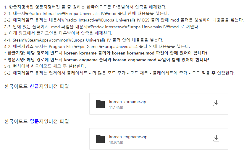 설치 후 유로파 첨 들어갔을땐 영어로 잘 구동되어서 이후 영문지명 한글패치 했는데, 위와 같이 나옵니다...ㅜㅜ