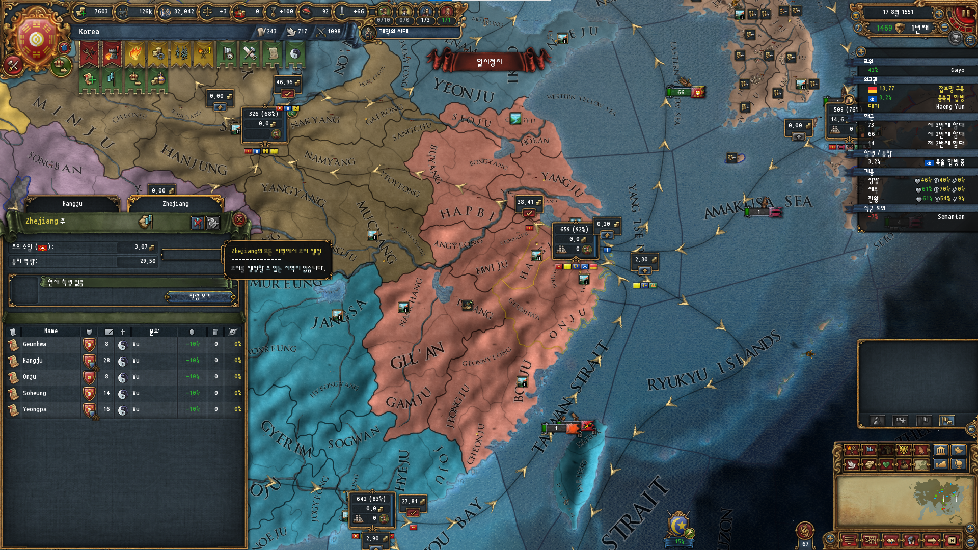 천명 시스템의 2차 코어를 주는 광동 난징 베이징을 제외한 1차 코어를 준 지역이 식민지 코어로 뜨는 것이군요.