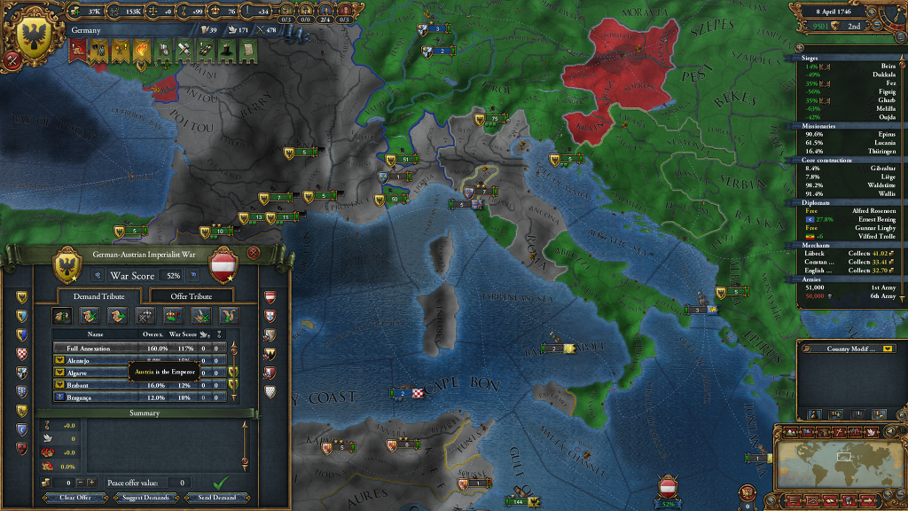Full Annexation 하려니, 당연히 워스코어가 부족하긴 한데 그건 안띄워주고 다짜고짜 Austria is Emperor ...라니