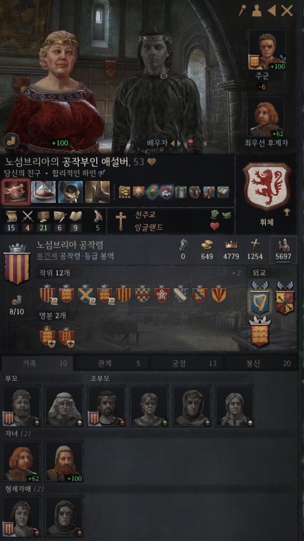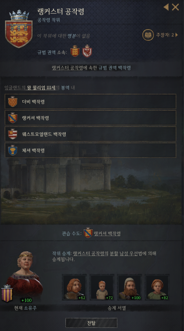사진에서 보시다 시피 노섬브리아 공작부인이이 공작령을 무려 4개나 가지고 있습니다.