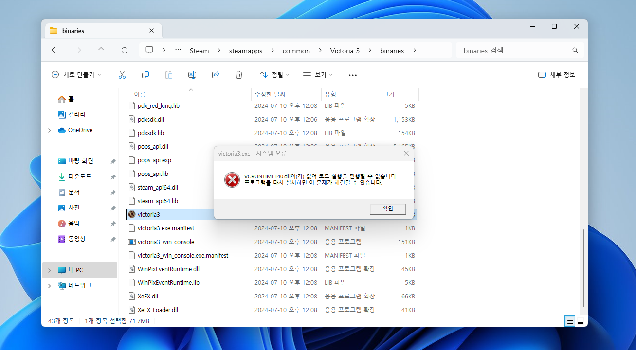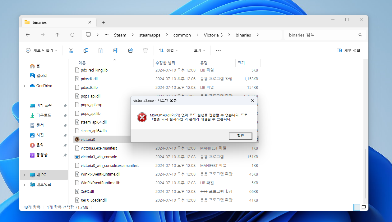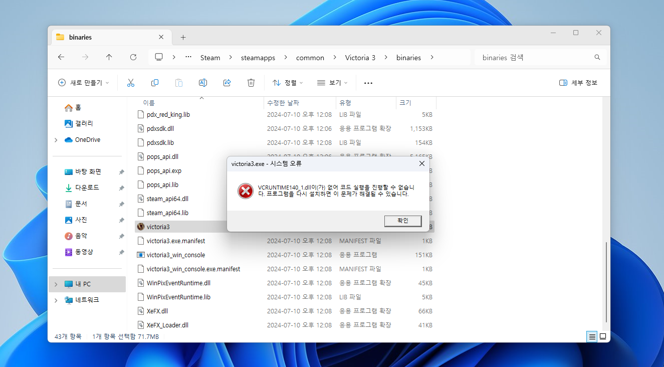 패독런쳐가 무반응이고 빅토3도 스팀폴더 안에 있는걸 클릭해도 이런식으로 뜨고...... 포맷을 한 이후로 이러케 됬습니다....