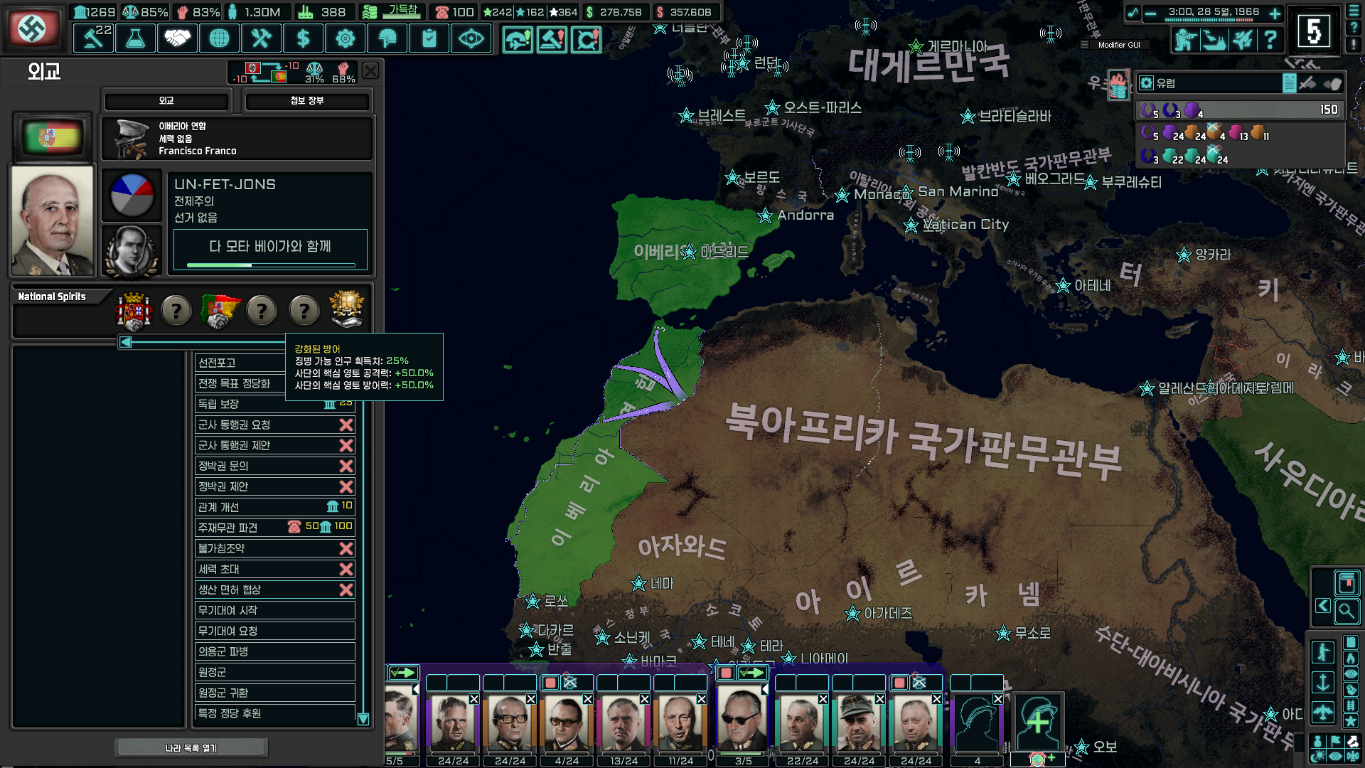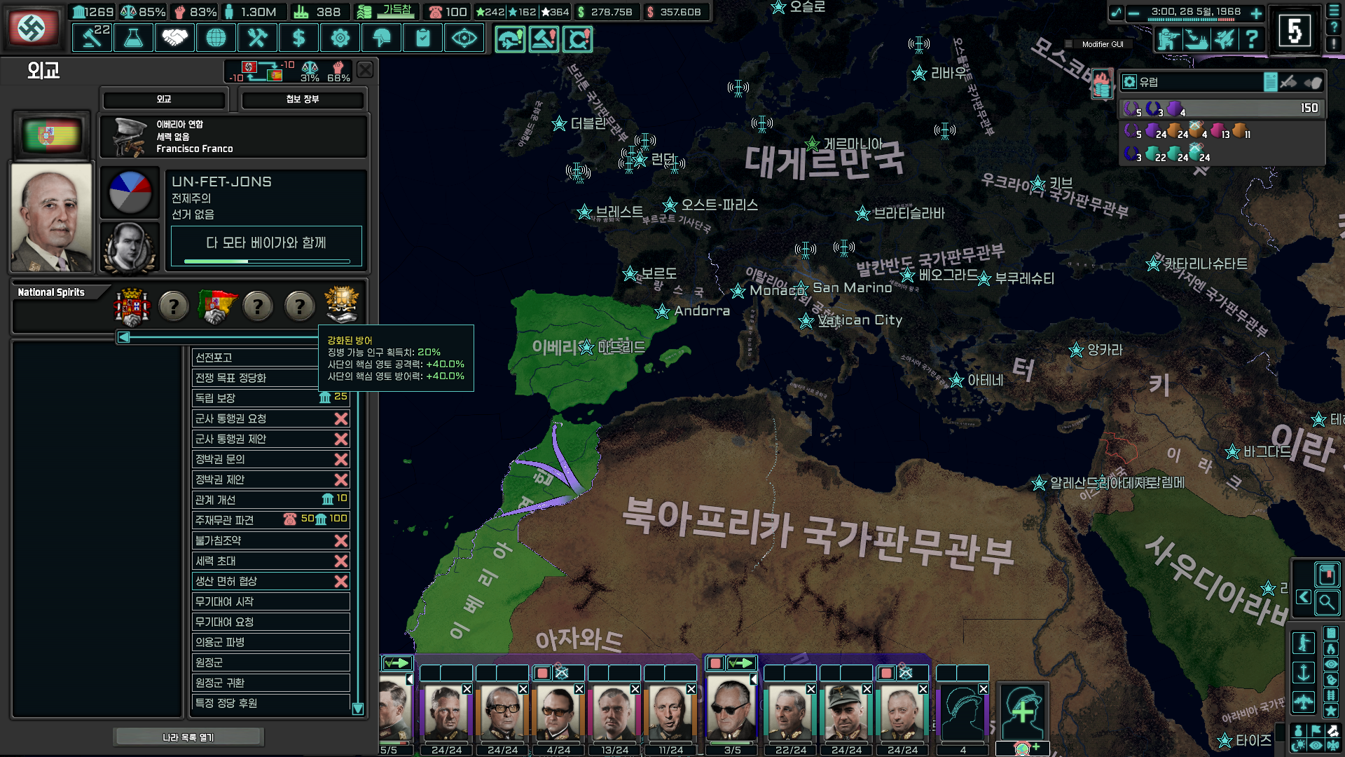 괴링 독일의 전쟁계획 A 부터는 주변국들에 독일에게 침공당한 국가를 지원하는 선택지와 자국 방어를 강화하는 두가지 선택지가 있는 이벤트가 뜨는데. 저건 자국 방어 선택지를 선택했을 시 생기는 국민정신입니다.