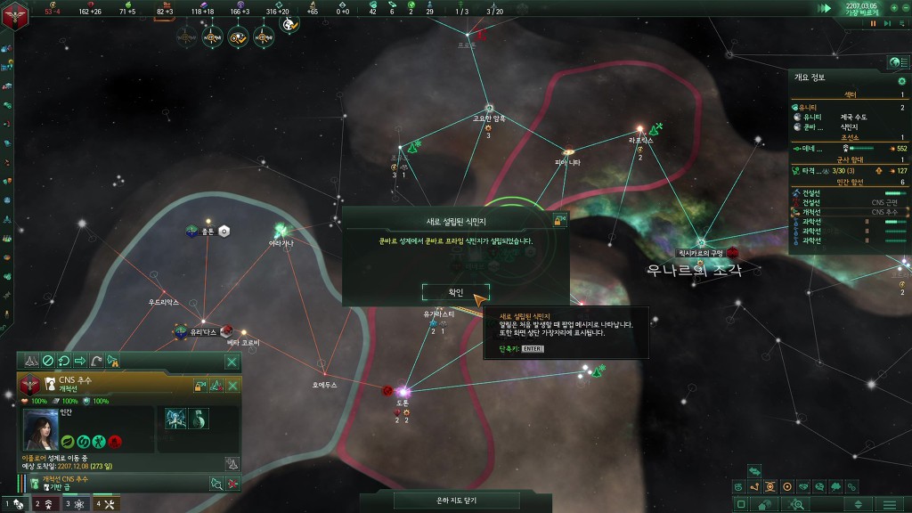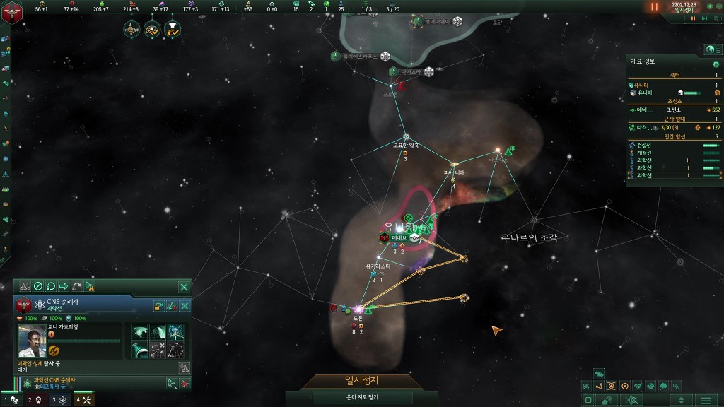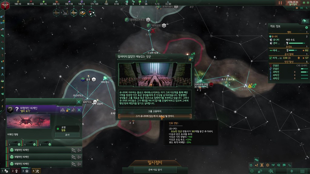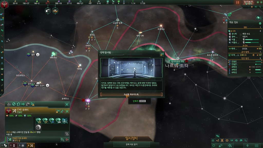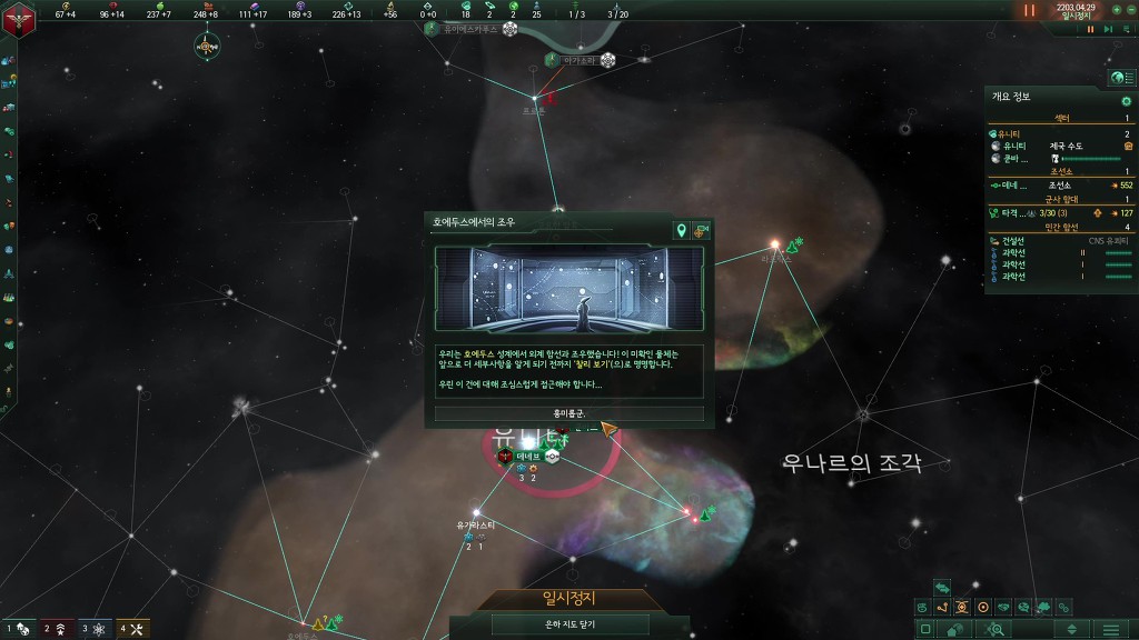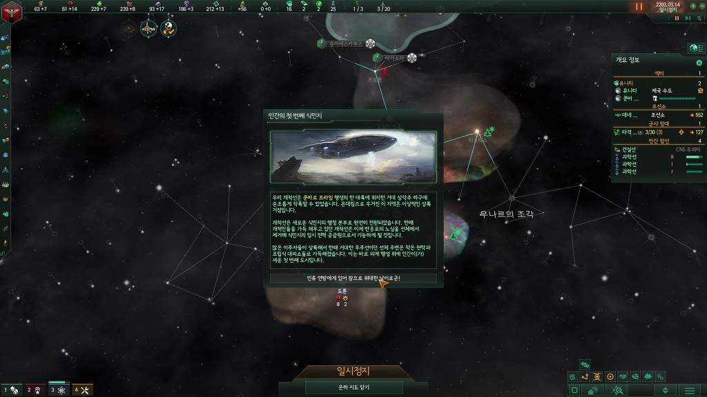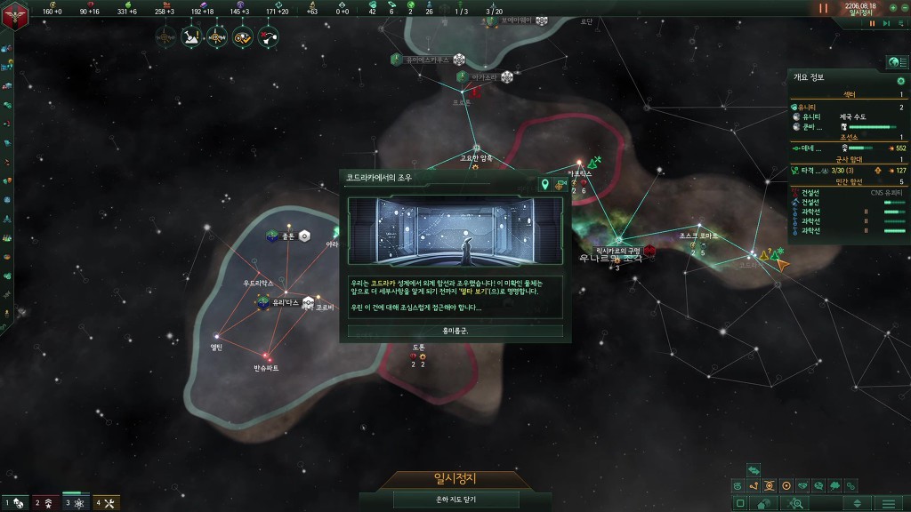 유라이 카르텔이라는 외계 세력이 서쪽에서 국경을 넓히고 있던 걸 생각하면 우리 유니티 인류는 정말 간신히 마지막 시간을 잡은 셈입니다. 우리가 아주 늦은 것은 아니었지만, 엄청나게 늦은 것은 분명하군요. 괜찮습니다. 이제부터라도 만회해 나갈 수 있는 차이니까요."
