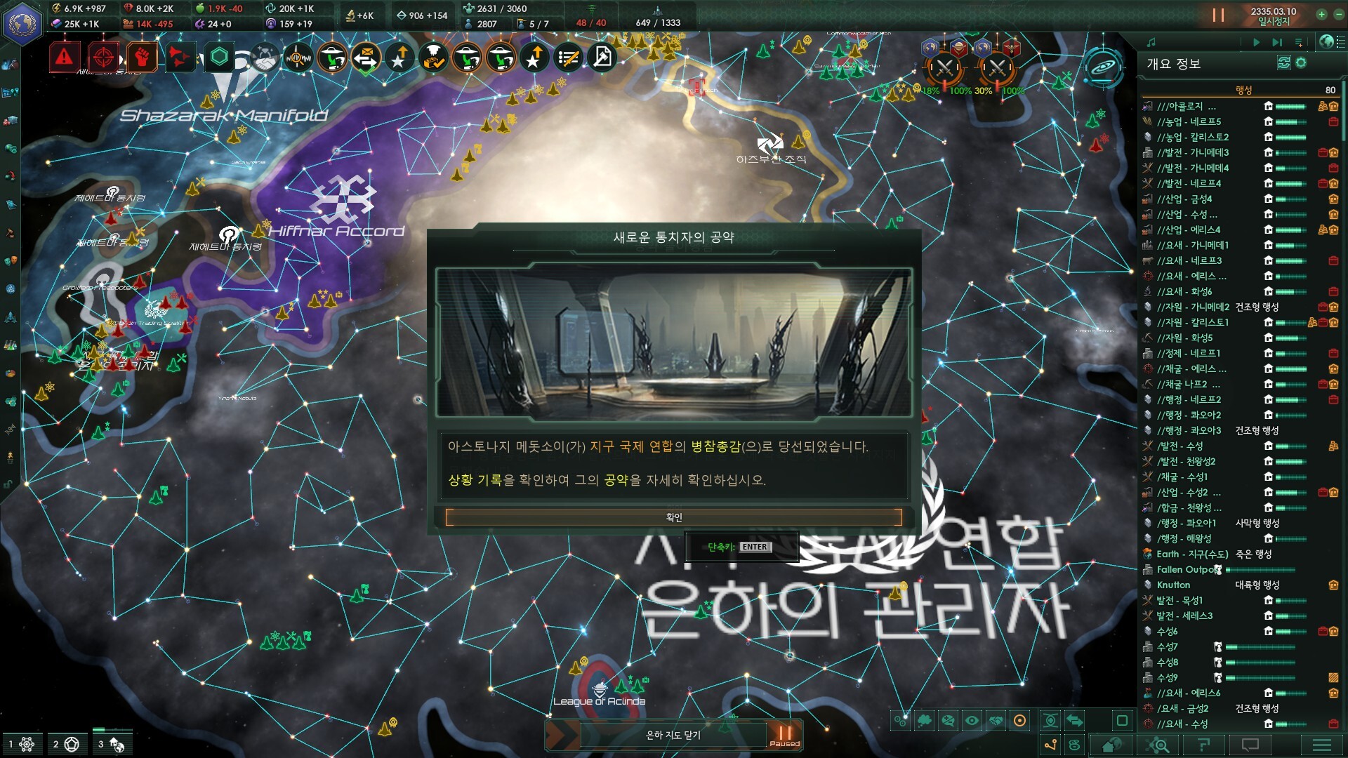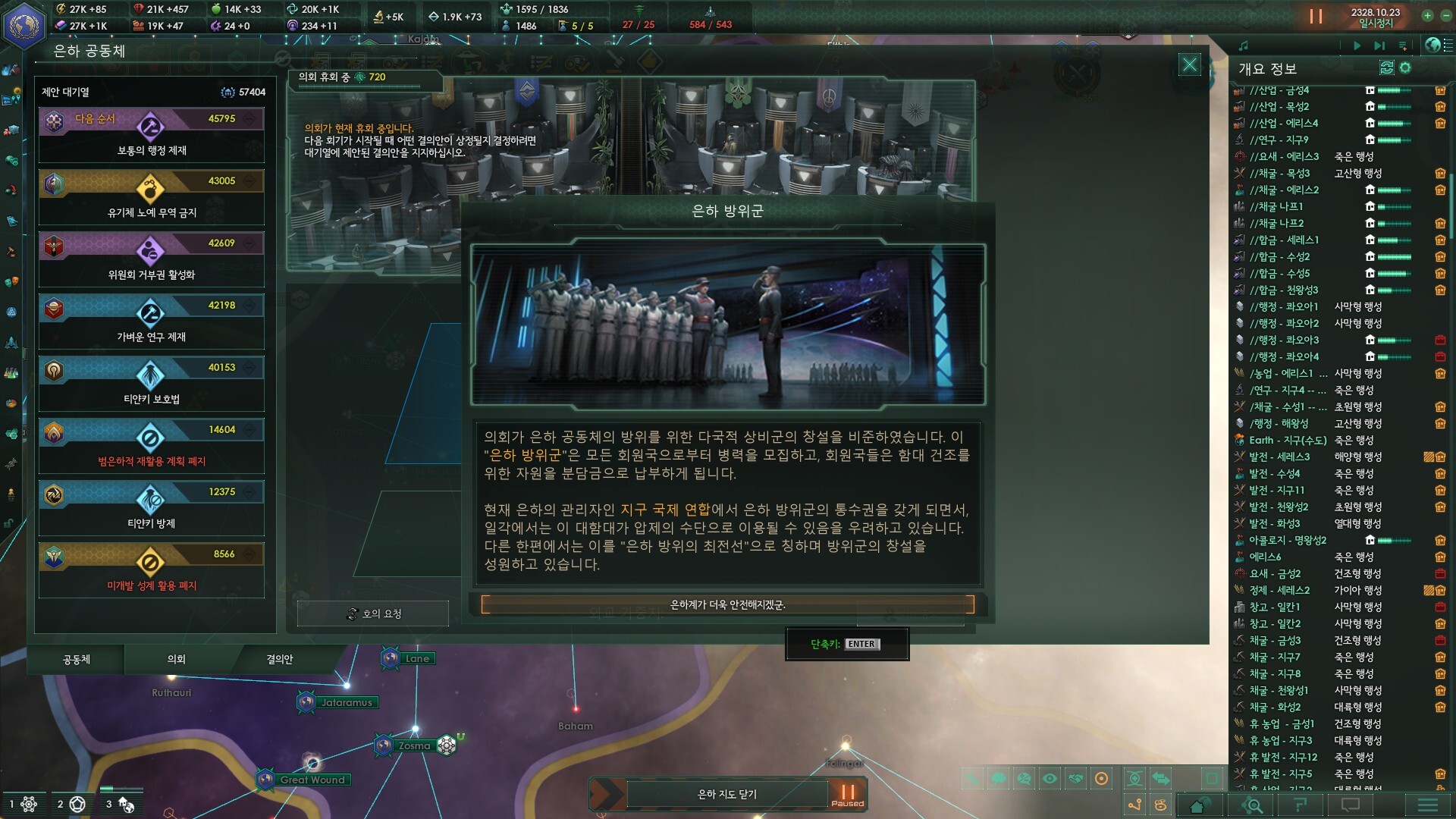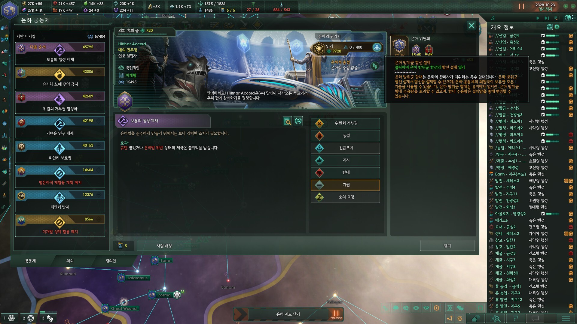 은하의 관리자에 취임하게 되면 월간 +5 주는게 생각보다 엄청 좋습니다. 의회 긴급조치권도 엄청 유용합니다.