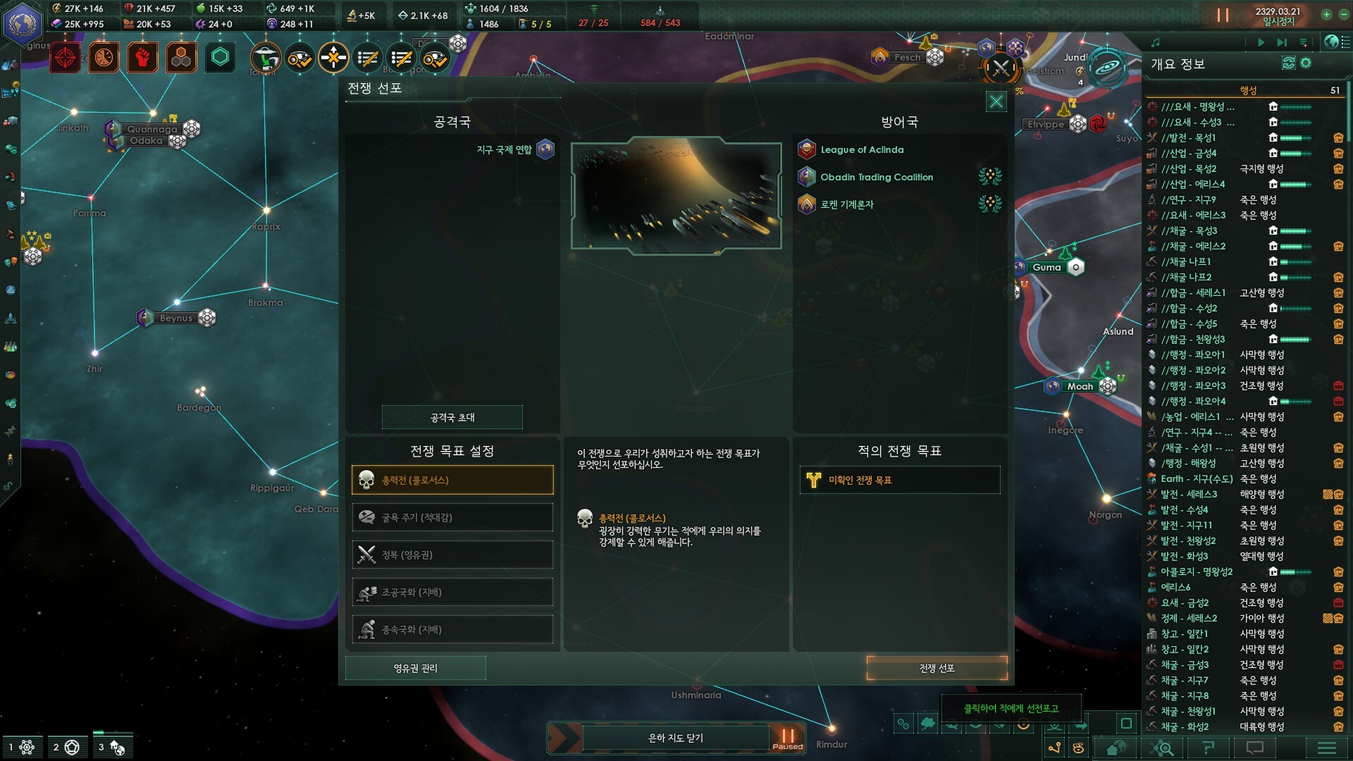 함대수용력 9999를 채우기 위해서는 대략 25개 정도 행성을 요새로 도배하면 됩니다.