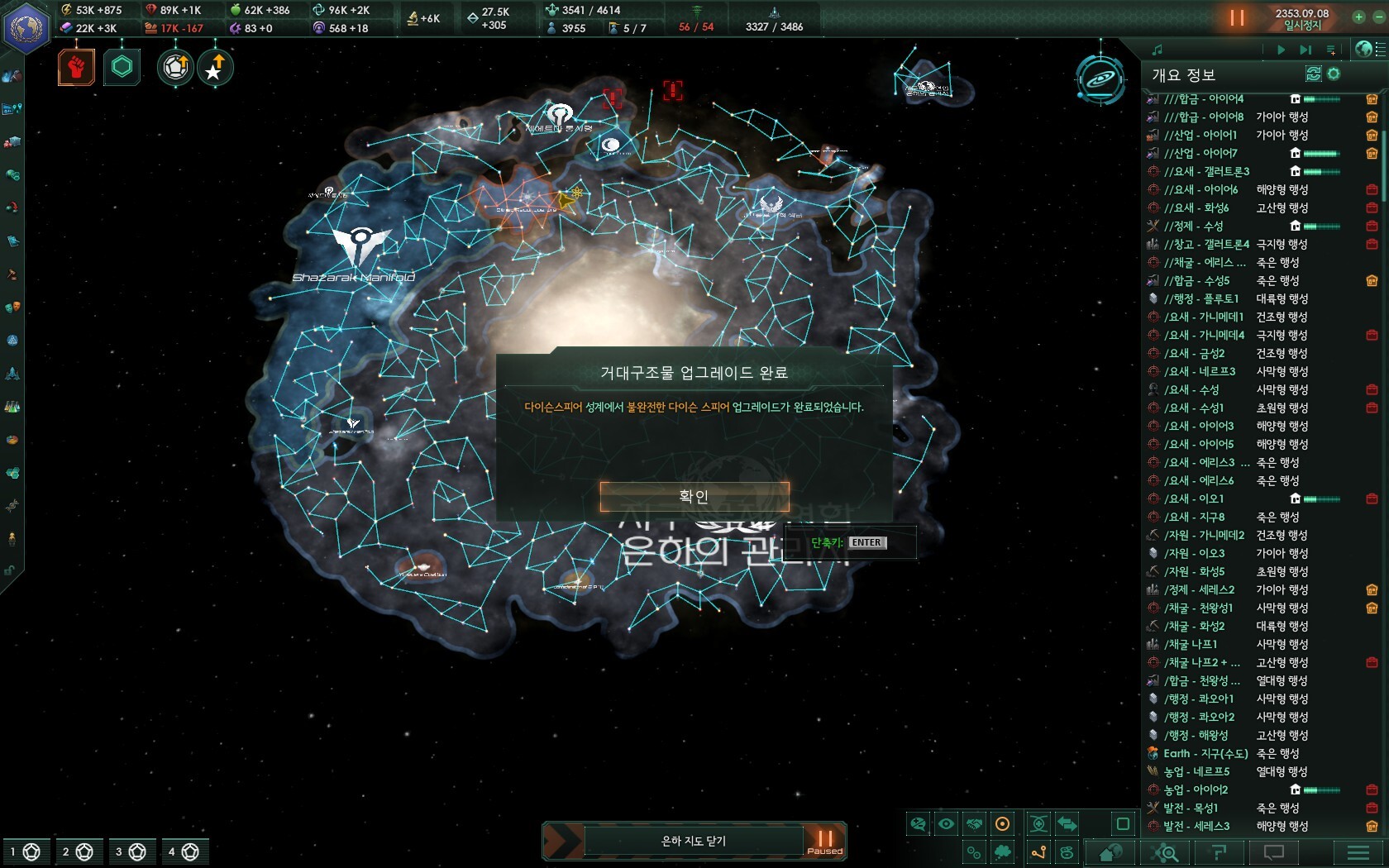 *팁* 제국 기본 함대수용량을 채우기 위해서는 행성에다 요새를 도배하는 방법이 가장 좋은데,