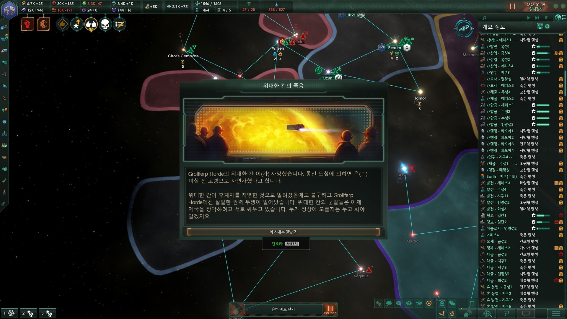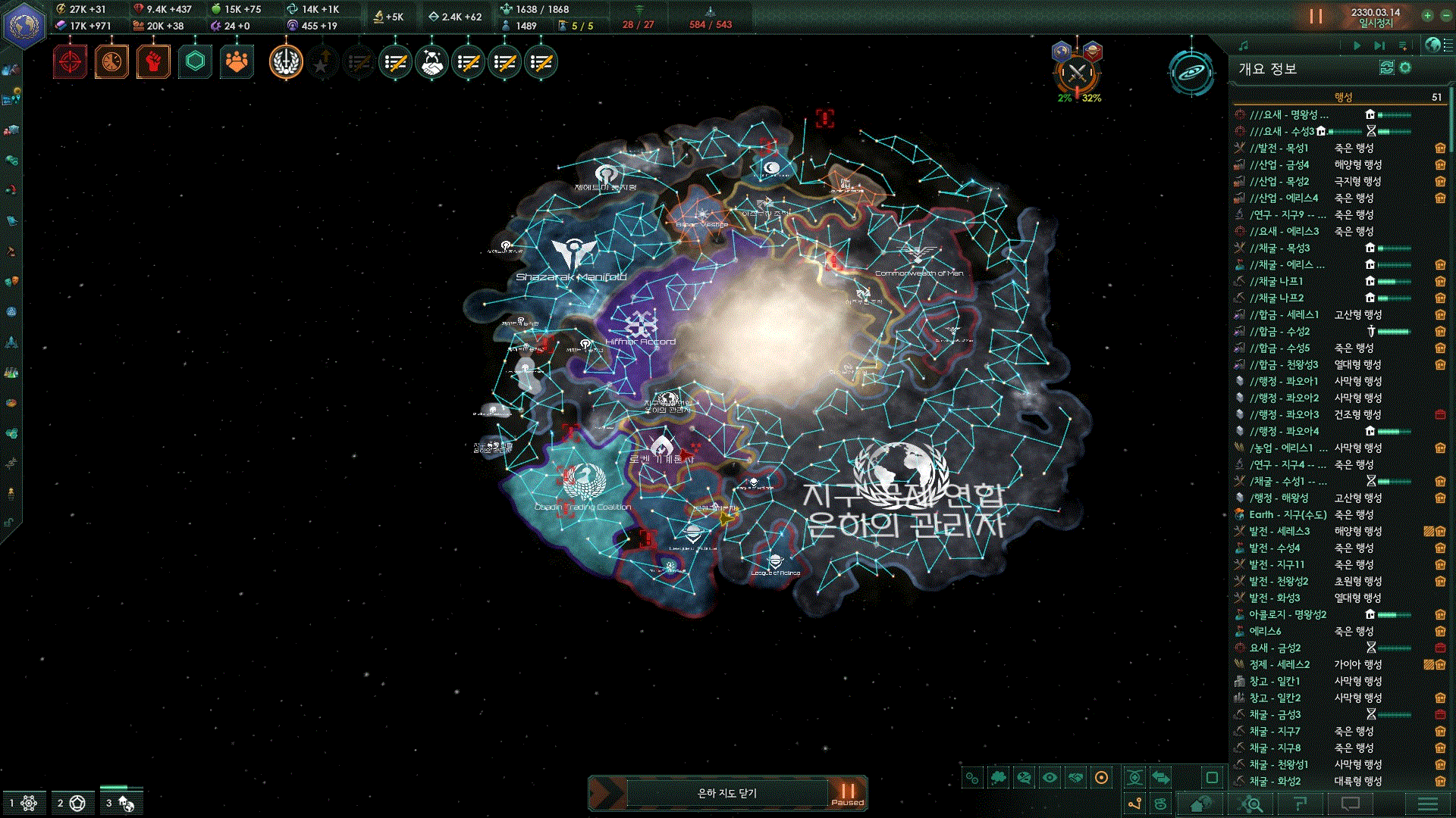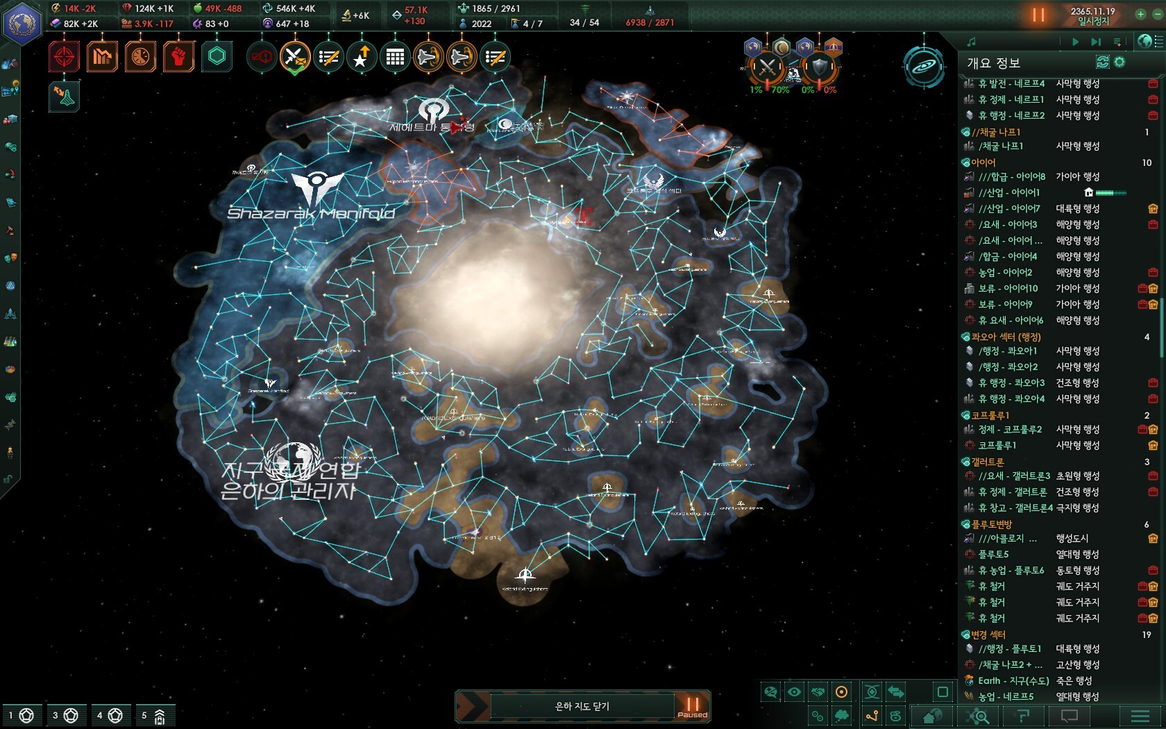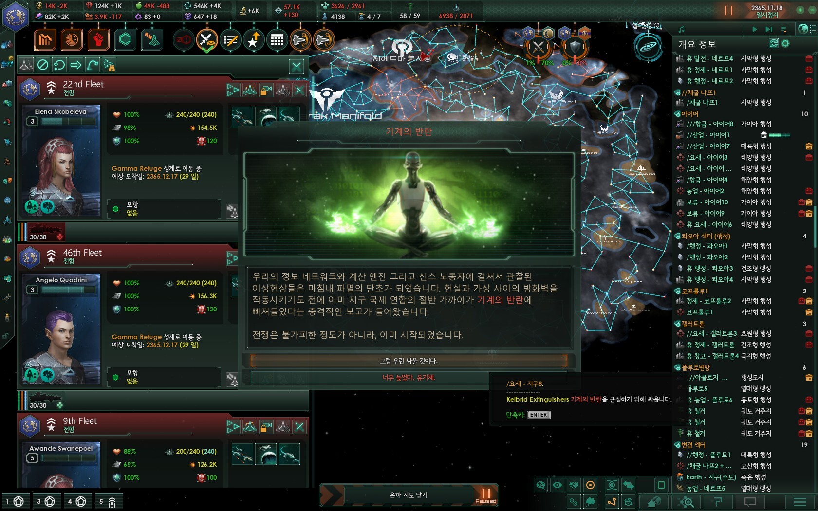 지금 당장 후반위기 튀어나와도 적당히 성계 내주면서 함대 생산 풀로 돌리면 이길 수 있습니다. ㅋㅋ