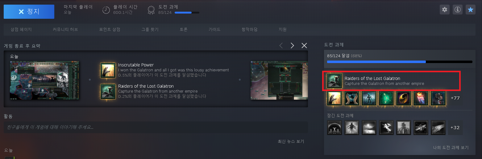 나머지는 이제 지루한 함대생산 및 함대편성 + 후반위기와의 결전만 남았군요.