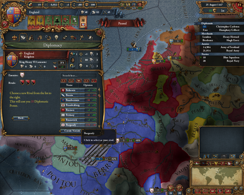 부르군디를 라이벌로 지정함으로써.