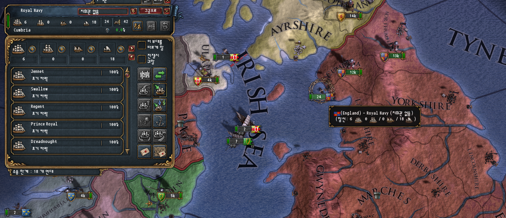 그사이 런던에 있는 royal navy를 서쪽으로 이동시켜서 수송준비를 합니다. 아일랜드 정복을 위한 준비작업이죠.