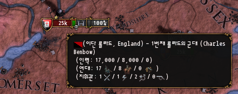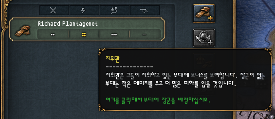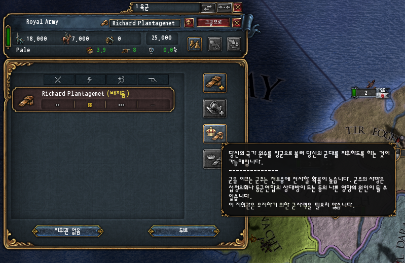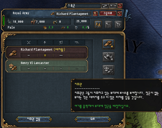 부대 위쪽 royal army라고 쓰여진 부대명칭 옆에 장군 선택란이 있습니다. 거기서 오른쪽 3번째에 국가원수를 장군으로 부릅니다.