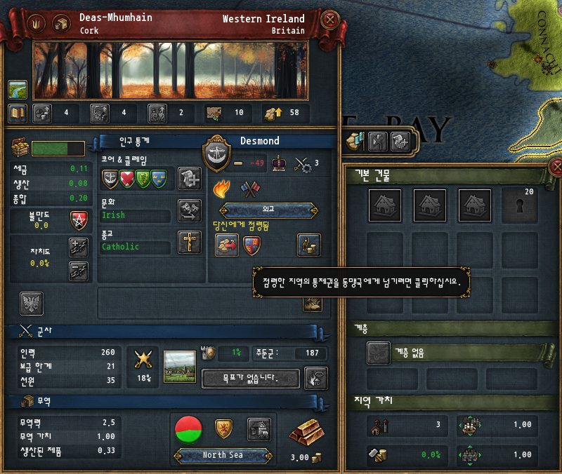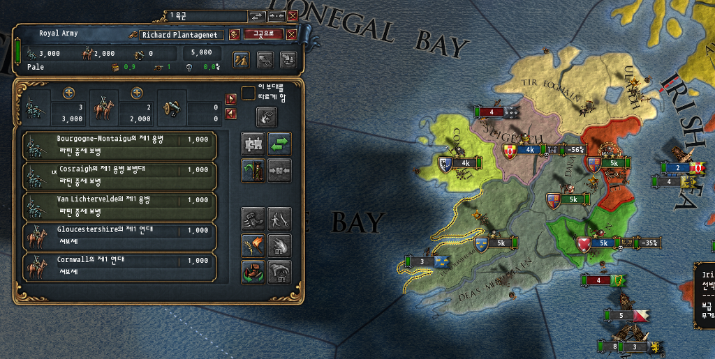아일랜드는 스코틀랜드에 비해 땅의 가치는 별로지만, 지리적 위치상으로 봤을 때 반드시 점령해야 하는 땅입니다.