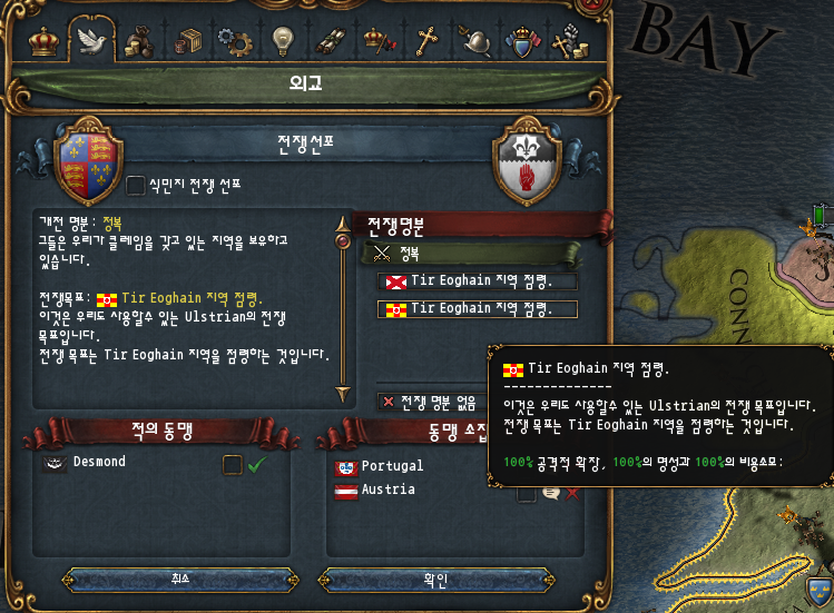 데스몬드가 함락되었습니다. 적국의 동맹국과 별도협상은 필수입니다.