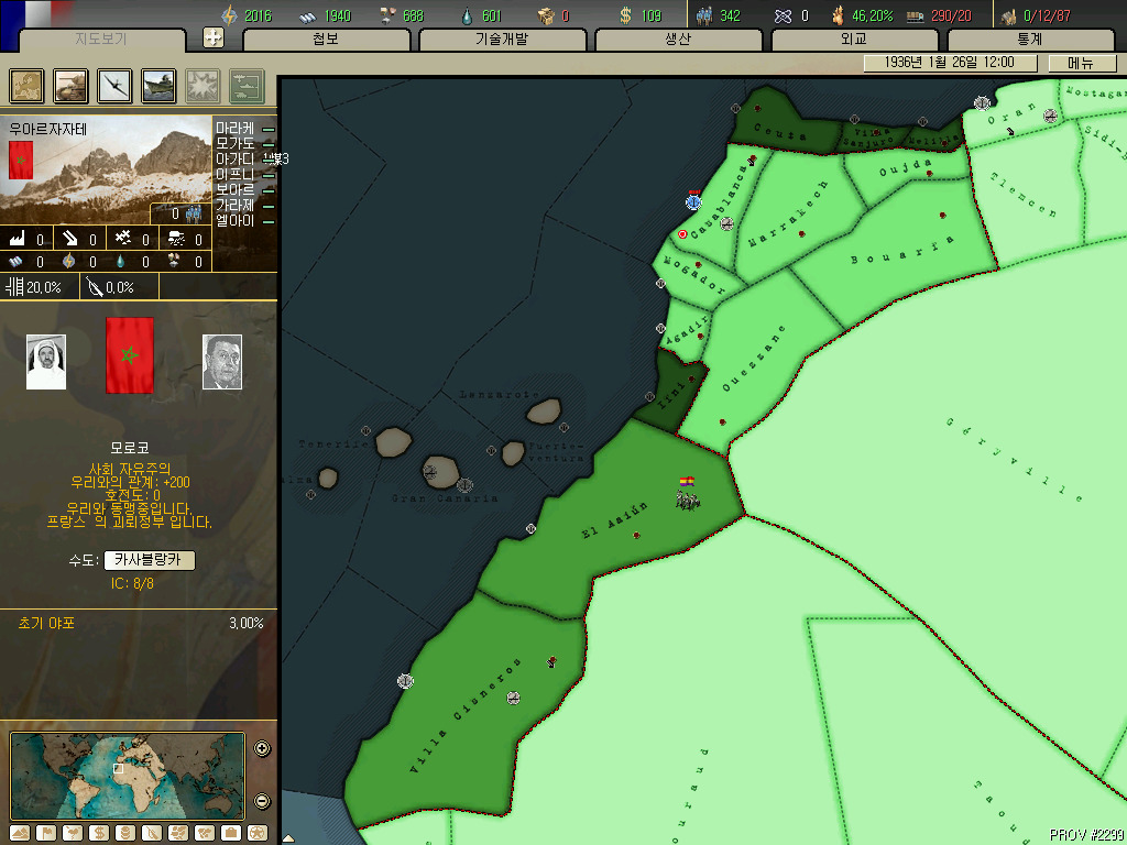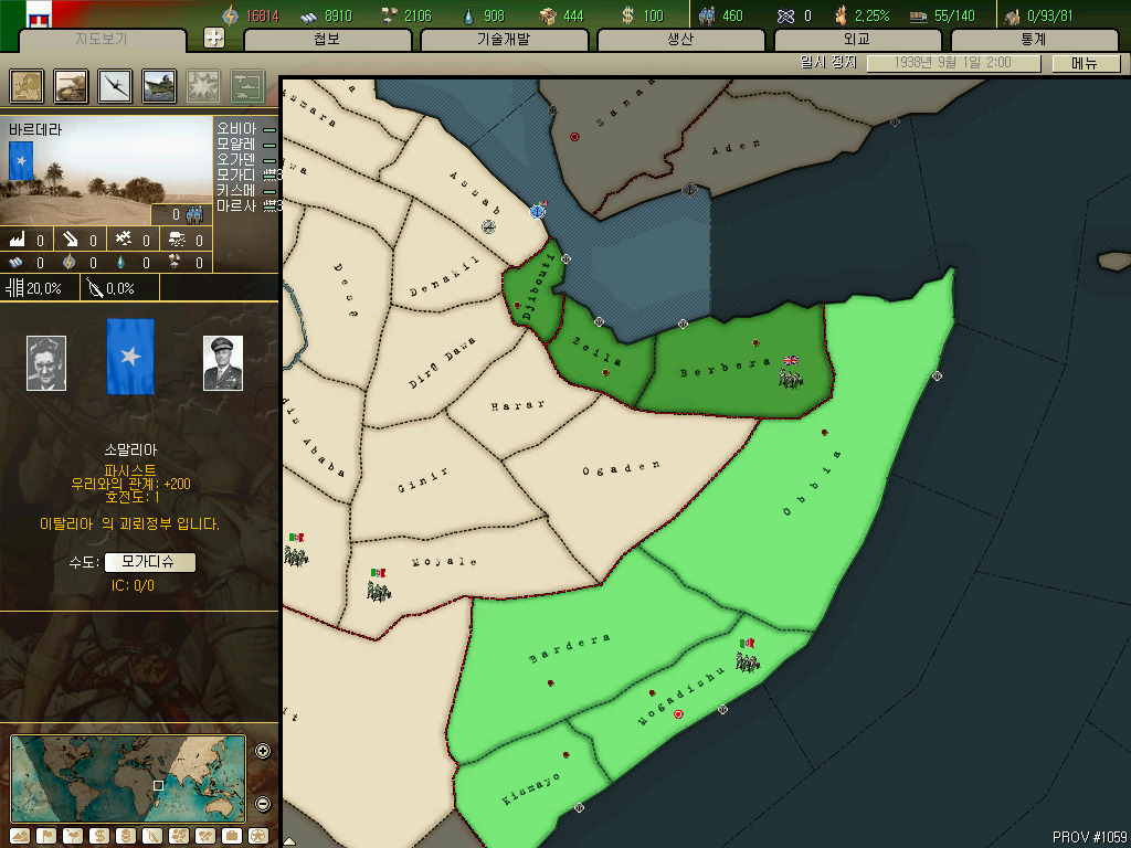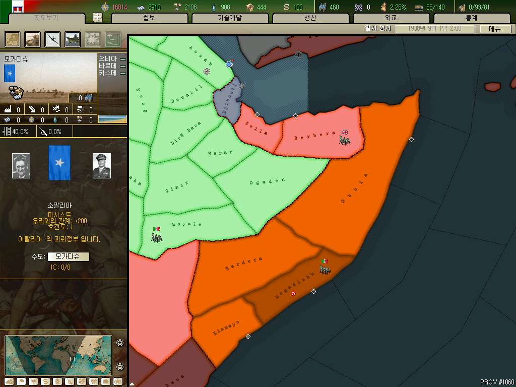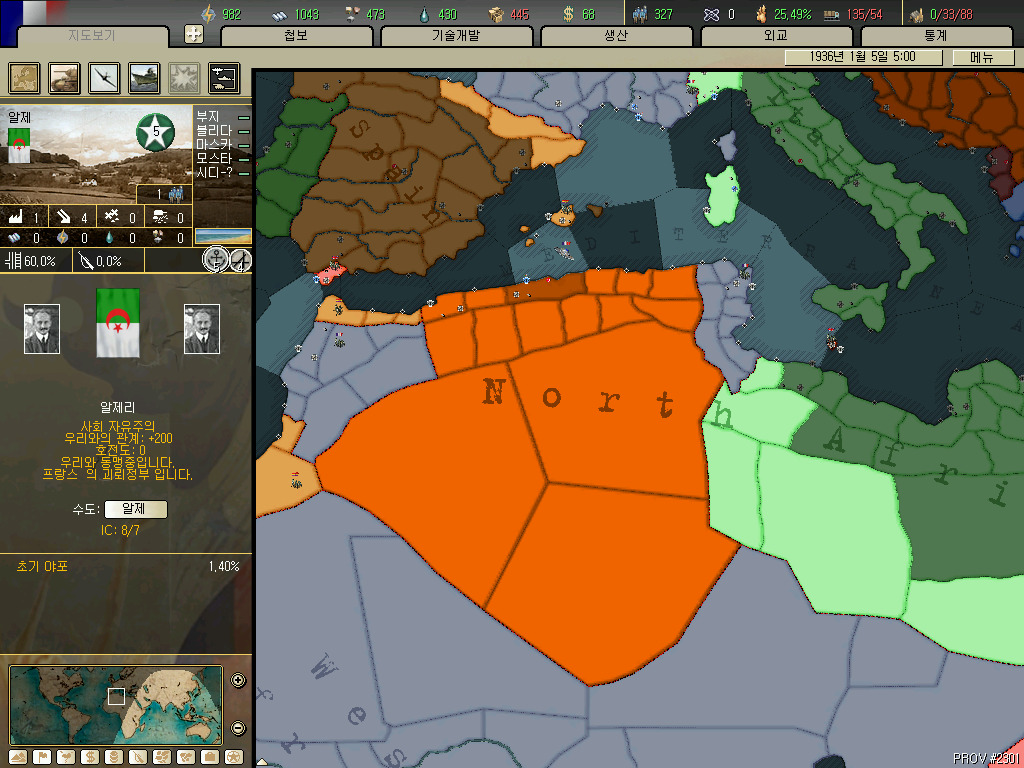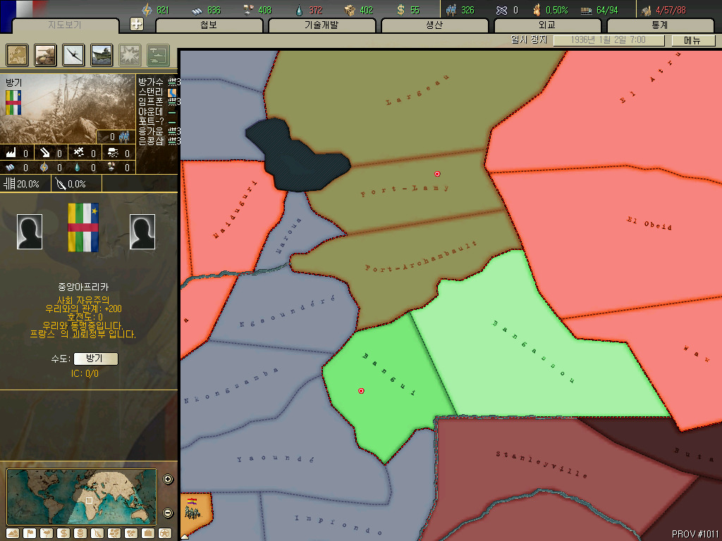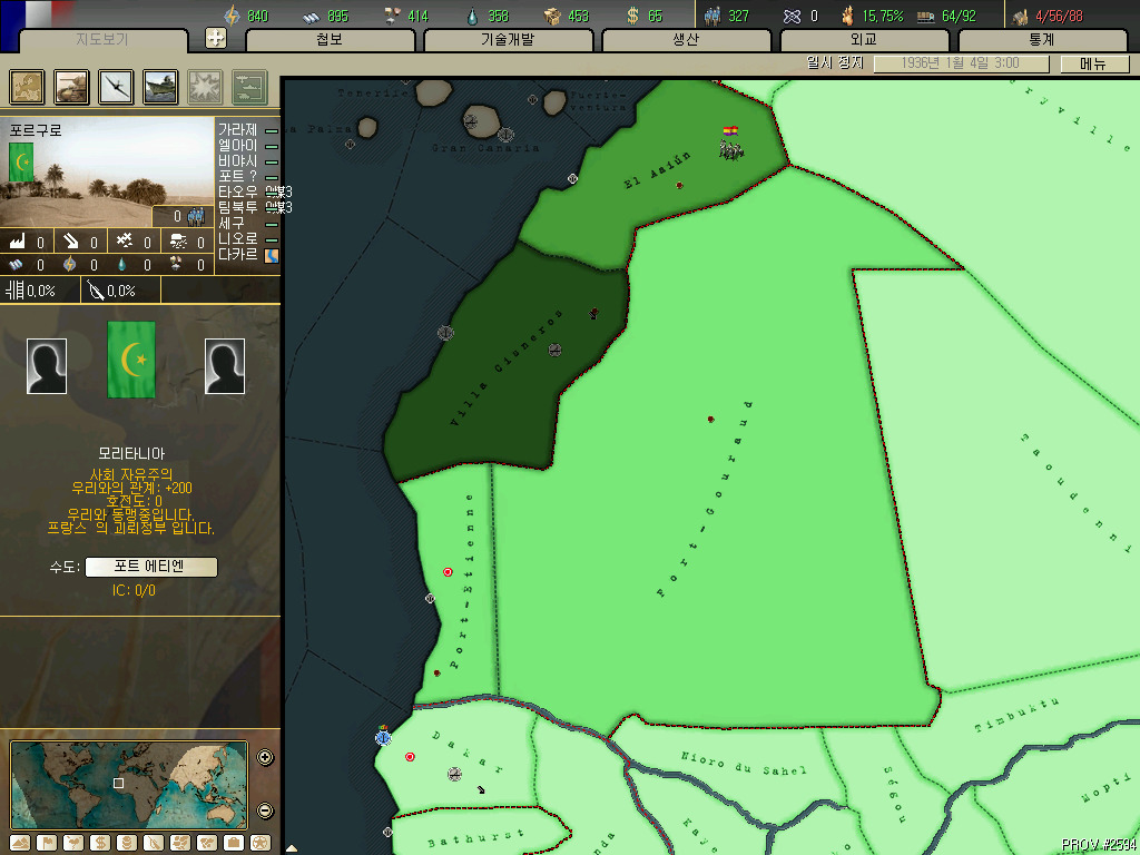 리비아입니다. 그래도 아프리카에서 어느정도 국력을 갖춘 나라지만 호이에서는 가지고 있는땅이 죄다 인력 0...