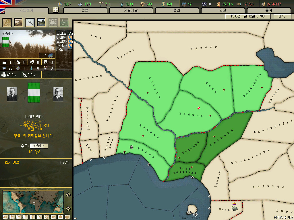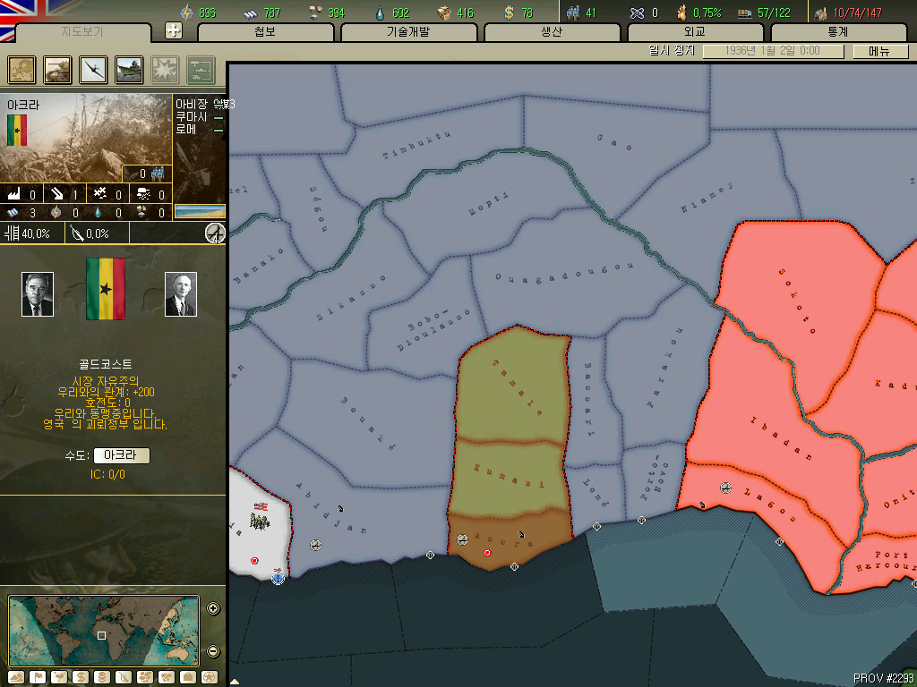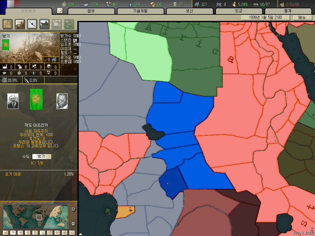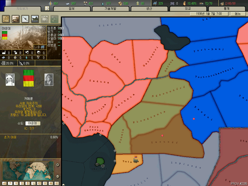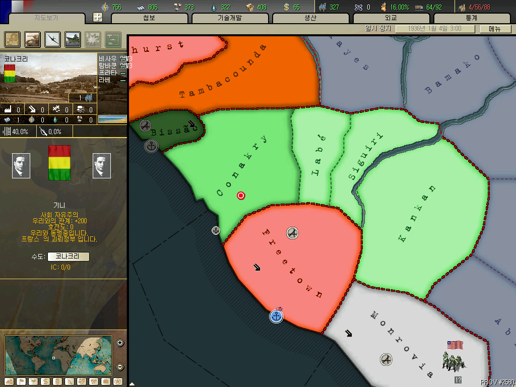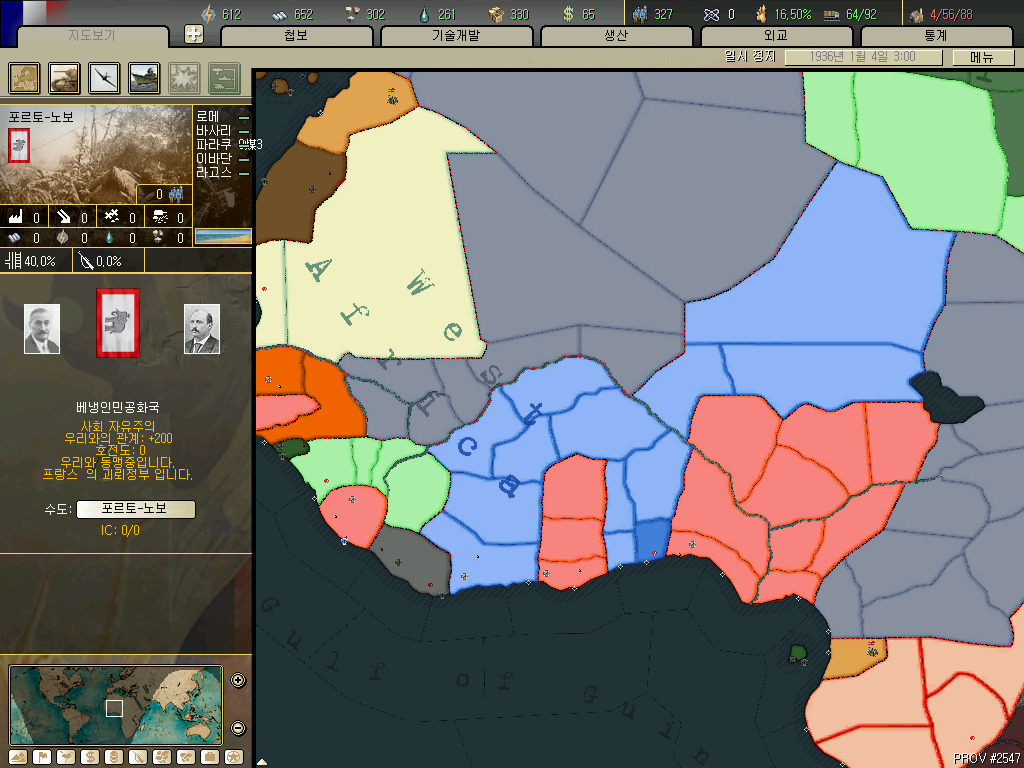 괴뢰국 총분석 아프리카편입니다. 36년 시나리오 기준 독립국은 3개뿐이고 그중 하나는 괴뢰국 하나는 37년이 되기도 전에 증발하는 안습의 대륙이지요. 덕분에 죽어났습니다. 이번에 세어보니 아프리카에 존재 할 수 있는 국가는 총 41개국. 그중 에티오피아와 라이베리아, 아랍연맹을 제외한 38개국을 소개하겠습니다.