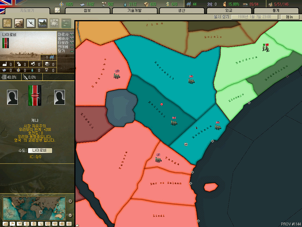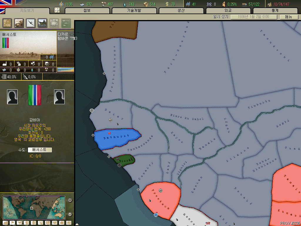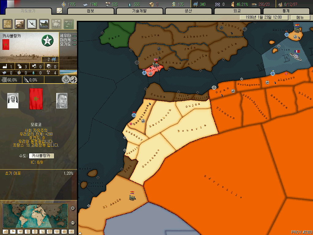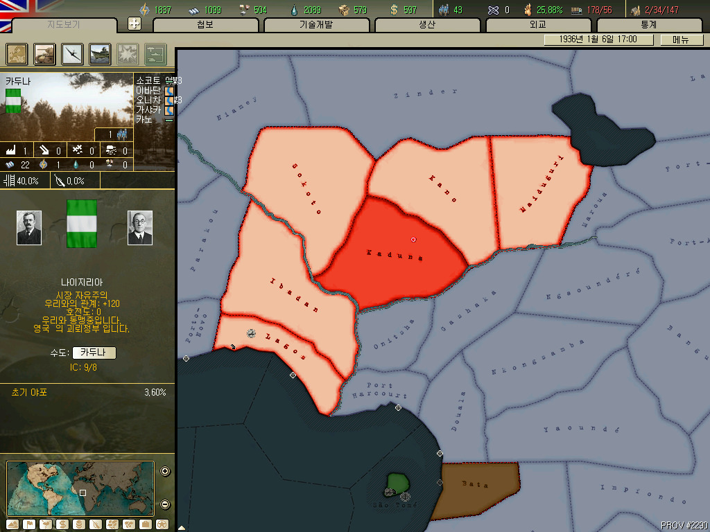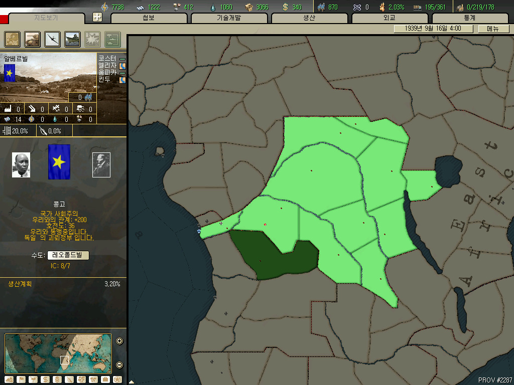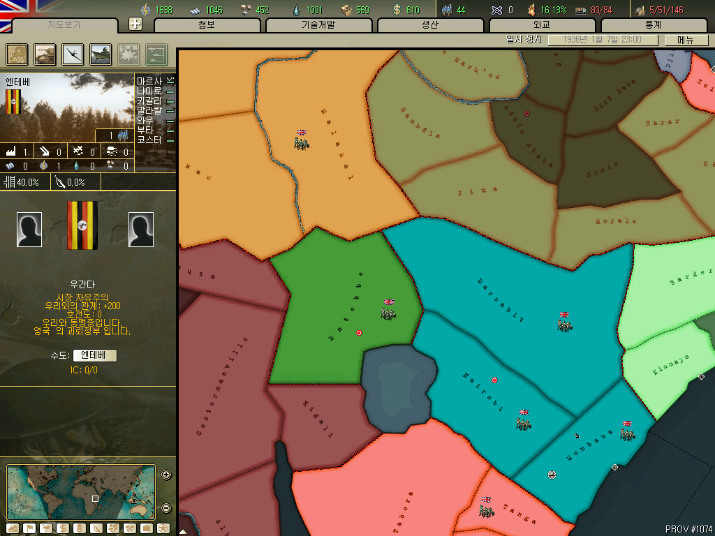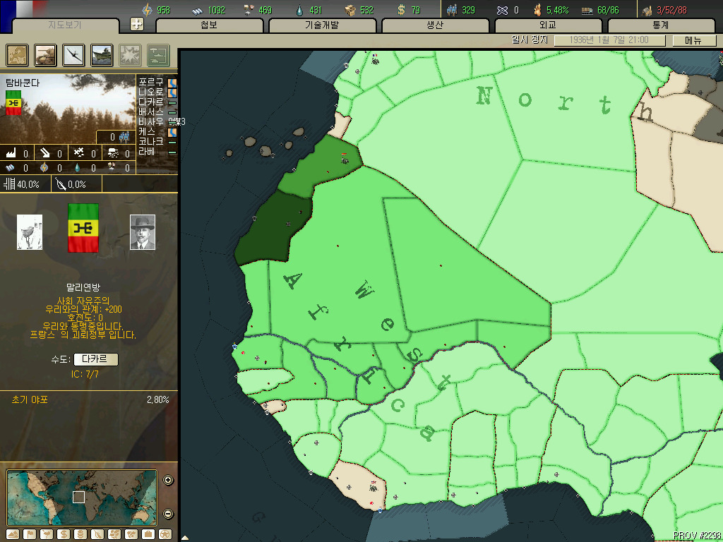 괴뢰국 총분석 아프리카편입니다. 36년 시나리오 기준 독립국은 3개뿐이고 그중 하나는 괴뢰국 하나는 37년이 되기도 전에 증발하는 안습의 대륙이지요. 덕분에 죽어났습니다. 이번에 세어보니 아프리카에 존재 할 수 있는 국가는 총 41개국. 그중 에티오피아와 라이베리아, 아랍연맹을 제외한 38개국을 소개하겠습니다.