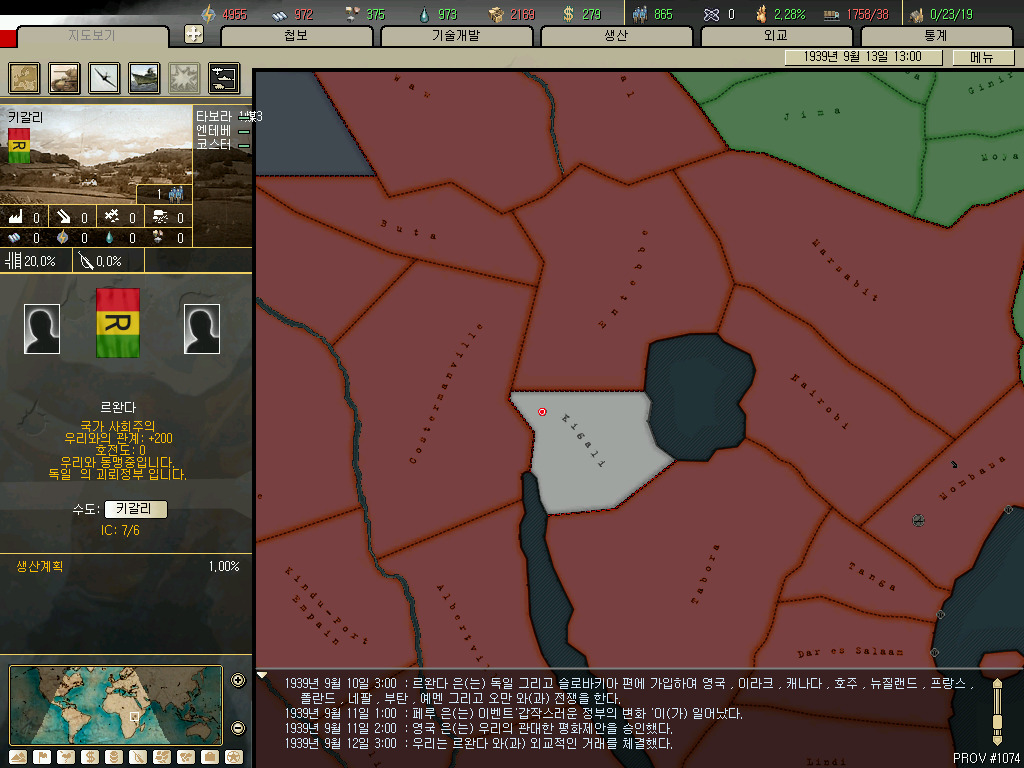 르완다입니다. 키갈리를 요구합니다. 단 키갈리는 콩고의 최소조건이기도 해서 르완다를 만들면 콩고를, 콩고를 만들면 르완다를 못 만듭니다. 콩고가 키갈리를 점령한 적은 없는걸로 아는데... 제 hoi가 좀 오래된 버전이라 이후에 수정되었을지도 모르겠네요.