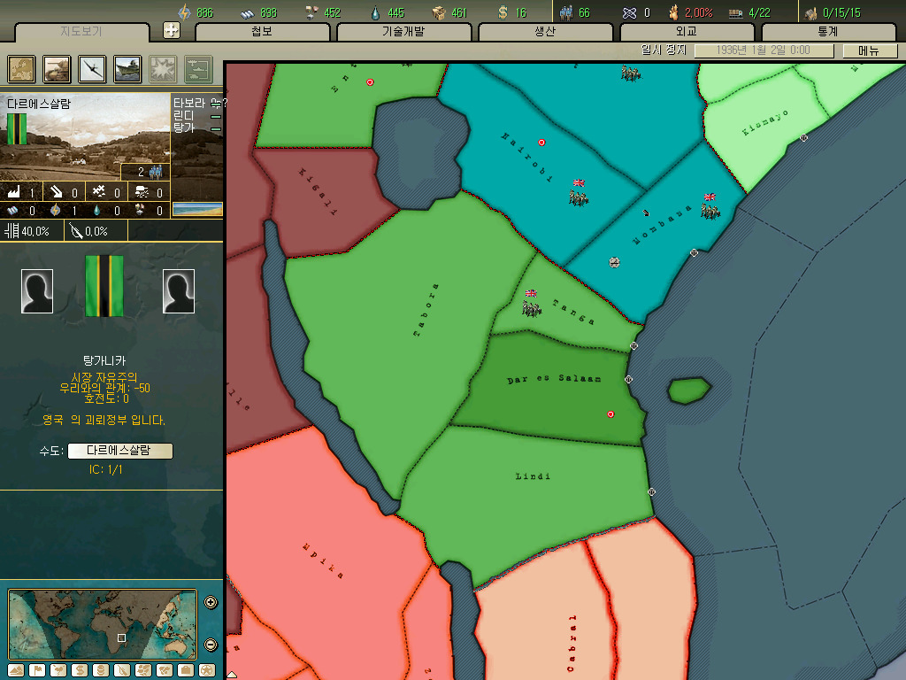 탕가니카입니다. 탕가, 타모라, 린디, 다르에스살람을 점령하고 있으면 됩니다.