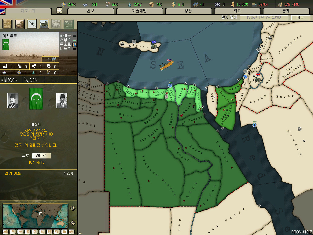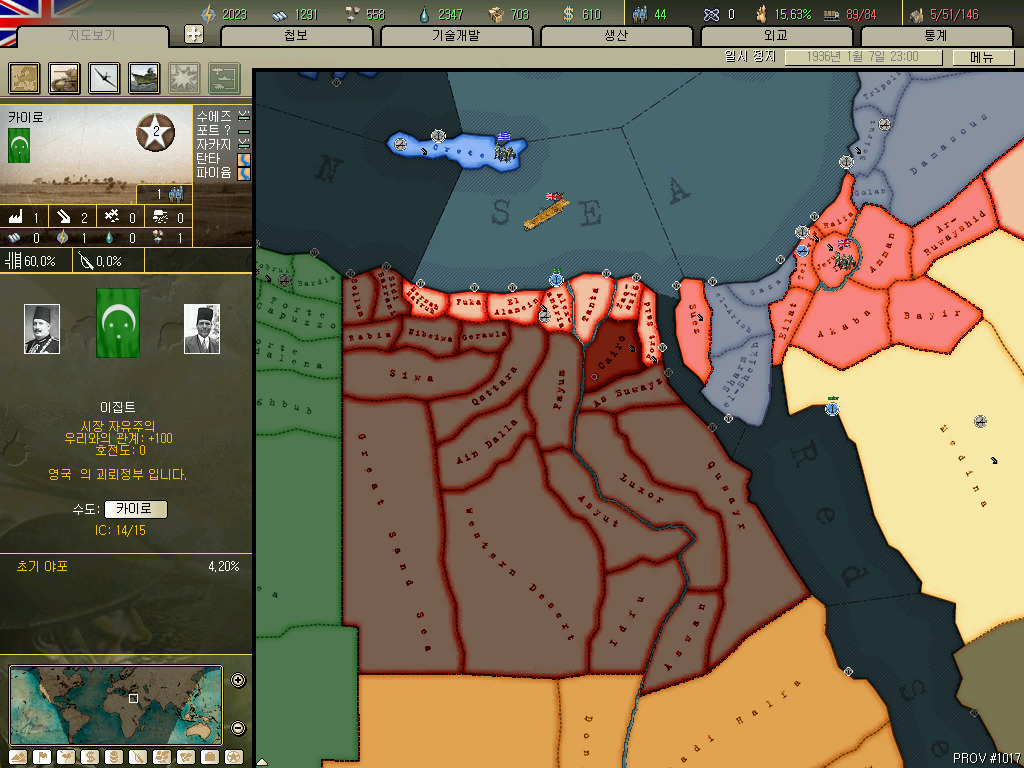 아프리카에서 나름 왕초노릇 가능한 이집트입니다. 수에즈 너머 있는 가자, 샴-엘-세이크, 엘-아리스 를 제외한 모든 이집트를 점령시 독립가능합니다.
