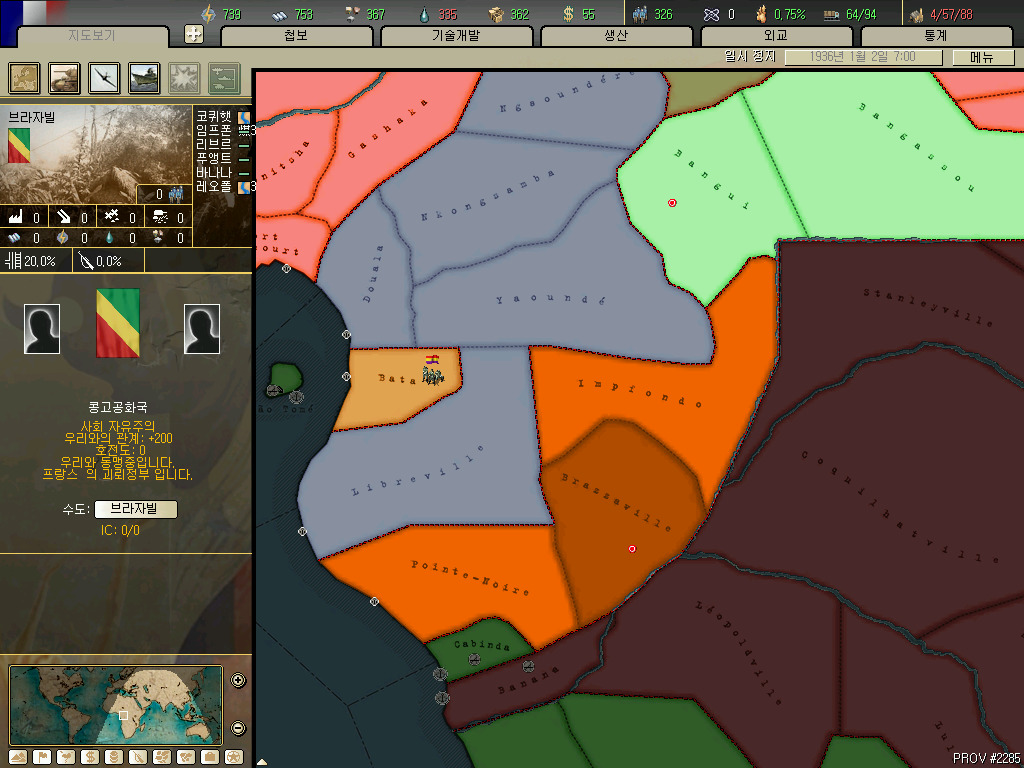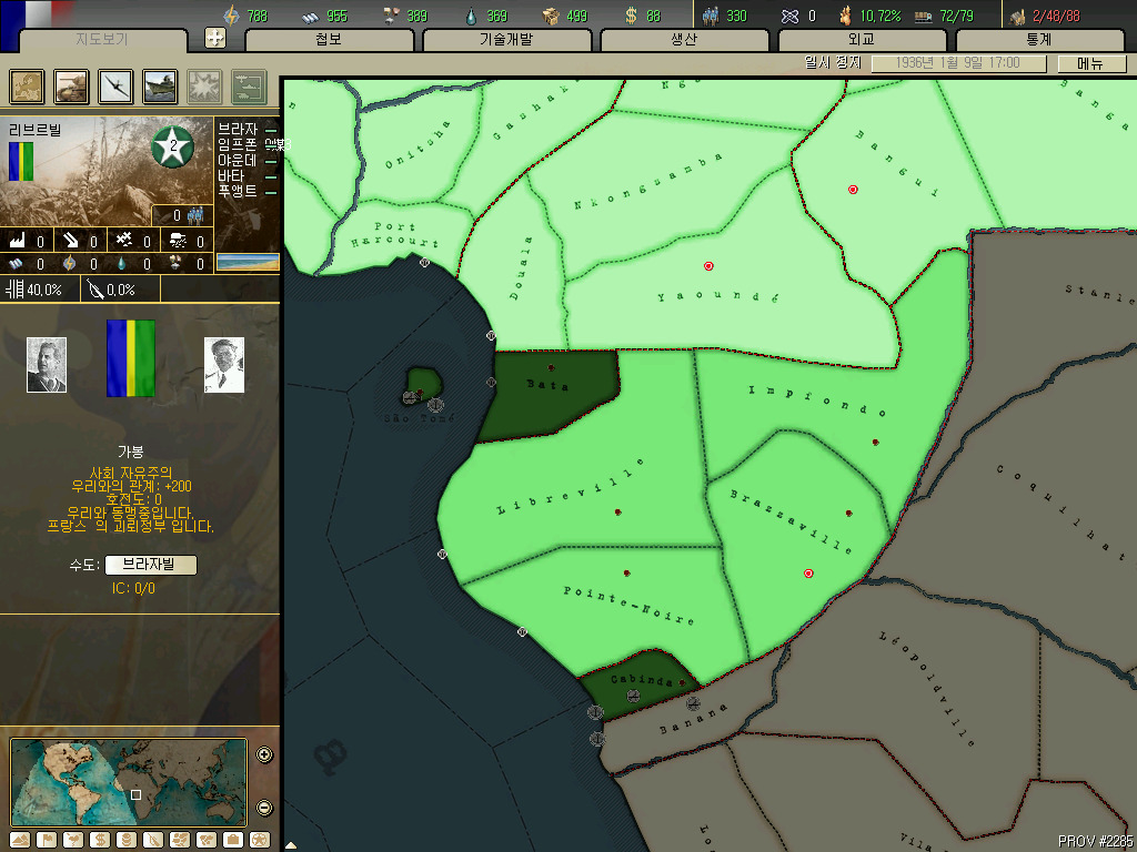 가봉입니다. 실제 영토에 가까워질려면 리브르빌 하나만 가져야 하지만 호이에서는 콩고의 영토를 모두 국민지역으로 합니다. 따라서 콩고나 가봉중 하나만 독립시킬 수 있습니다.