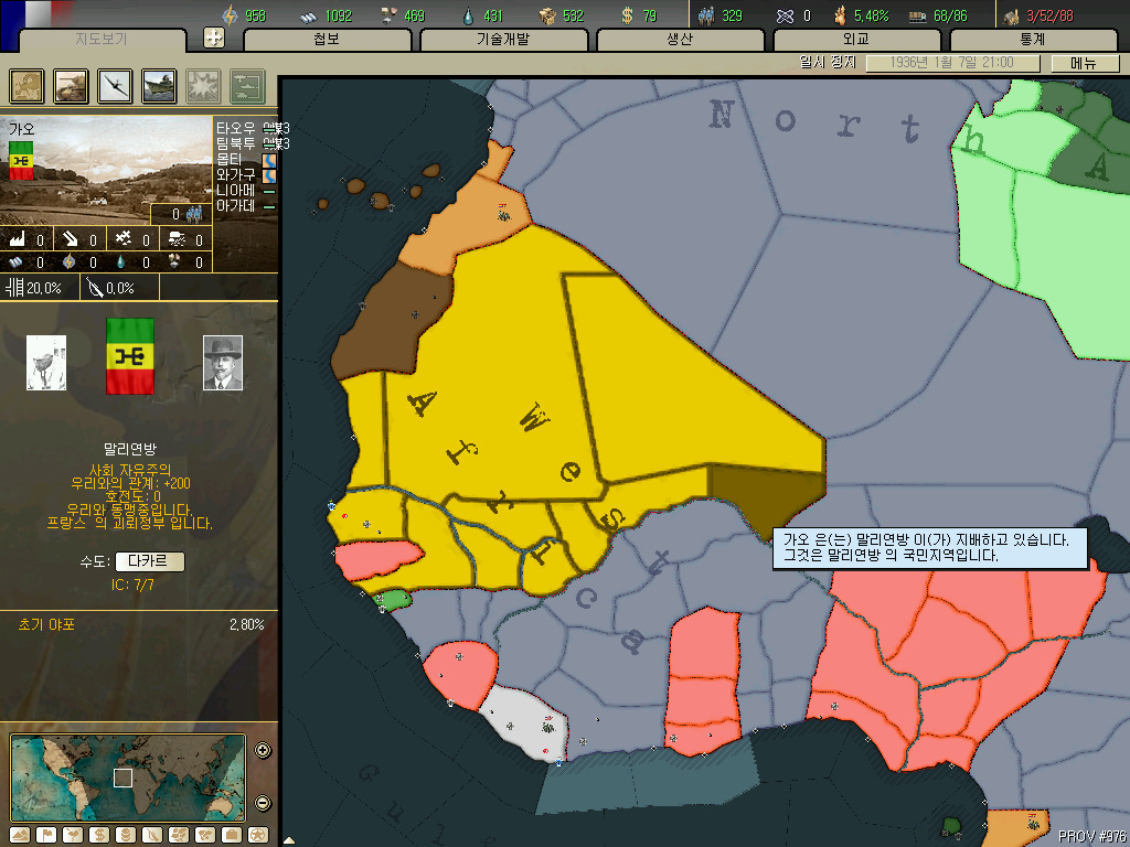 실제 말리연방의 영토는 세네갈+말리로 알고있는데 호이에서는 여기에 모리타니아도 집어넣네요. 이유는 모르겠습니다.