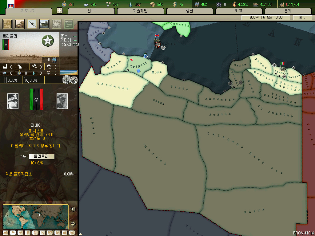 외우기 싫으면 그냥 리비아 맨밑에 있는 큰 프로빈스 4개를 제외한 모든 땅이 필요하다고 보시면 됩니다.